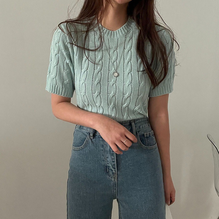 品名:플랫NT(케이블 크롭 하프 니트) ◎※☞颜色:그레이, 민트, 아이보리, 핑크 ◎※☞尺寸:FREE ◎※☞材质:腈纶 100% 翻译