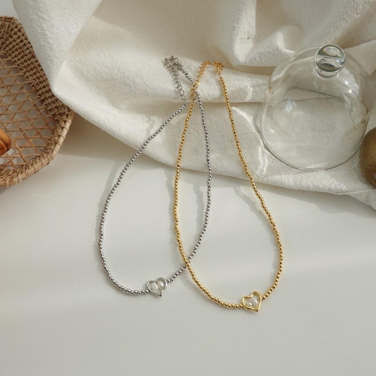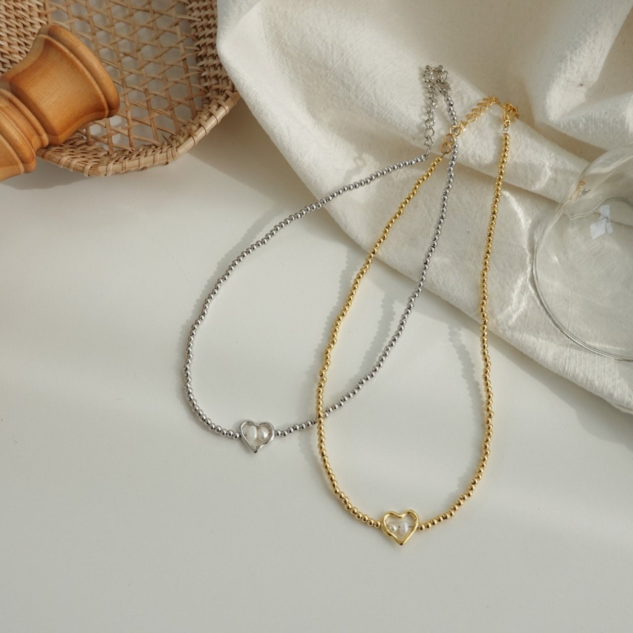 品名:N3001 담수진주 하트 목걸이 ◎※☞颜色:골드, 실버 ◎※☞尺寸:FREE ◎※☞材质:镀金 0% 翻译