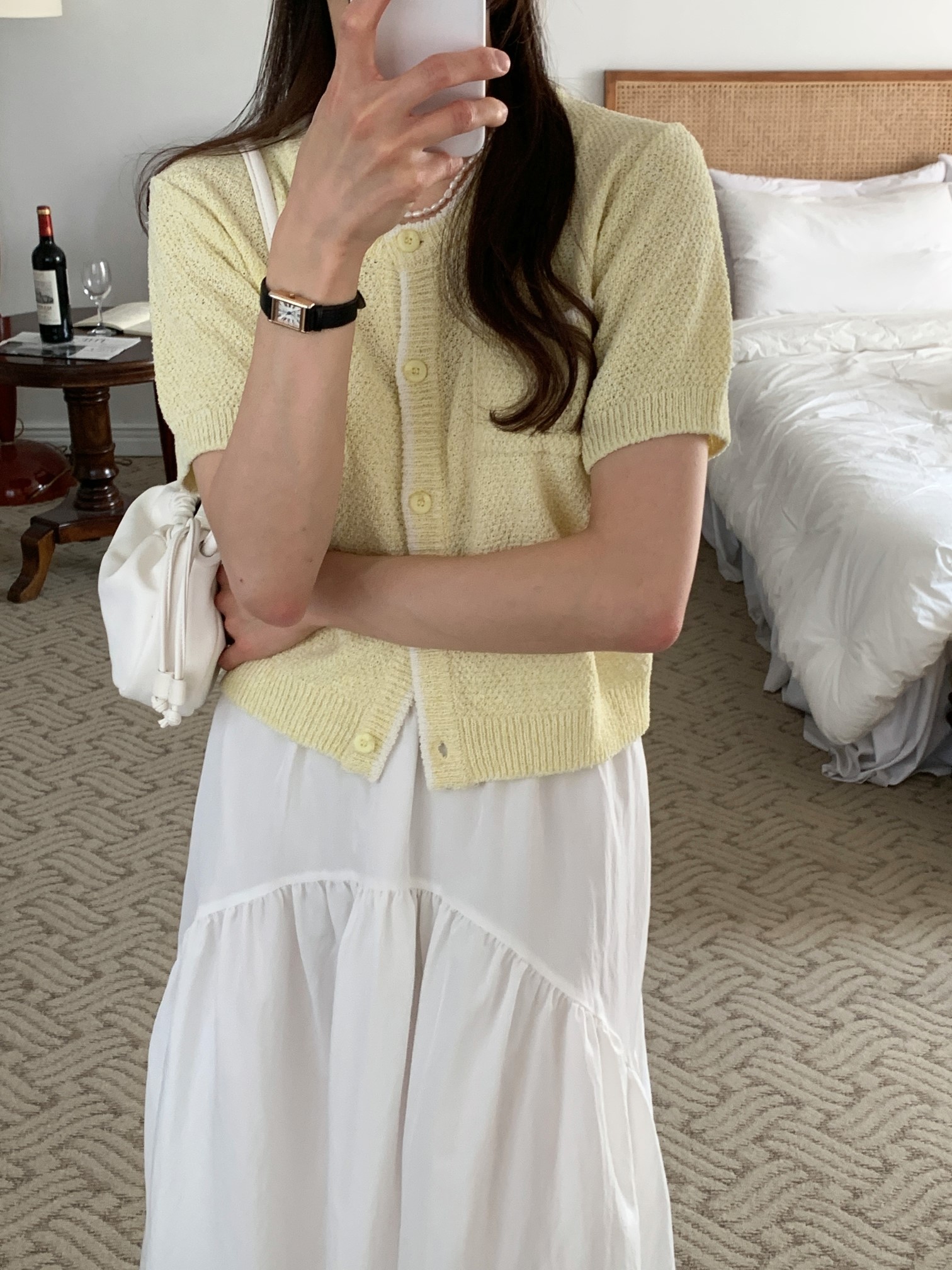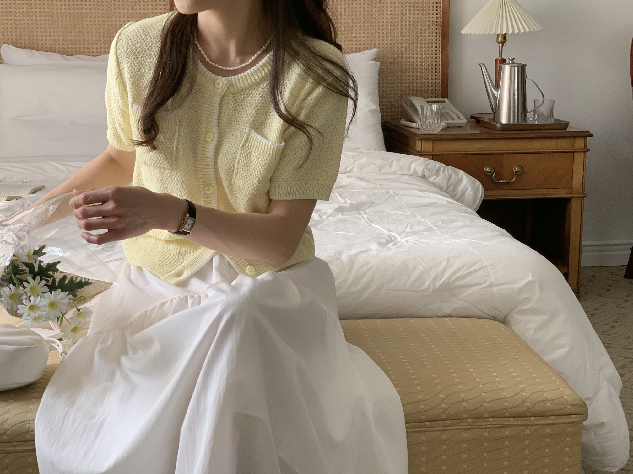 品名:트위드가디건 ◎※☞颜色:네이비, 아이보리, 연노랑 ◎※☞尺寸:FREE ◎※☞材质:腈纶 100% 翻译