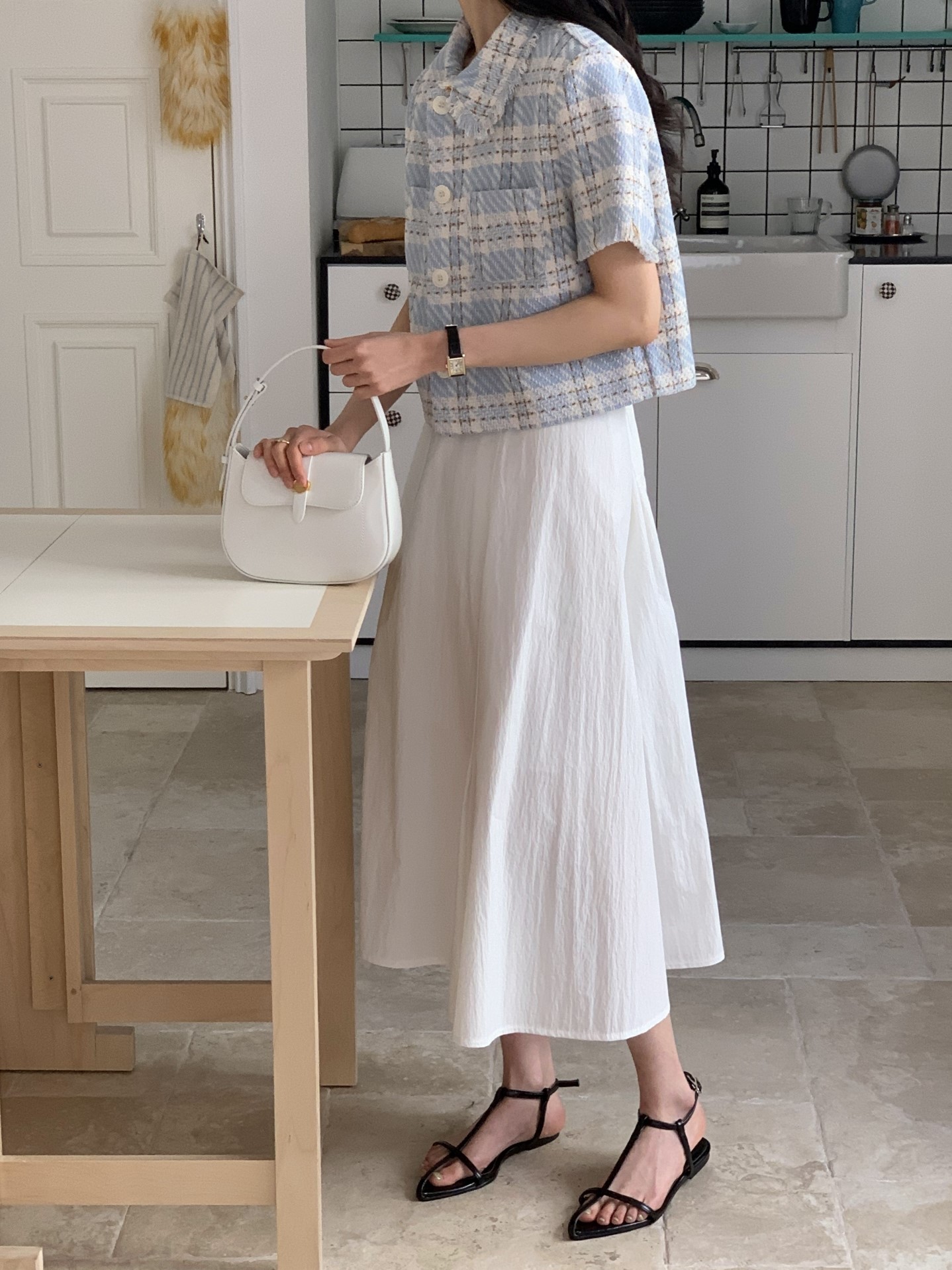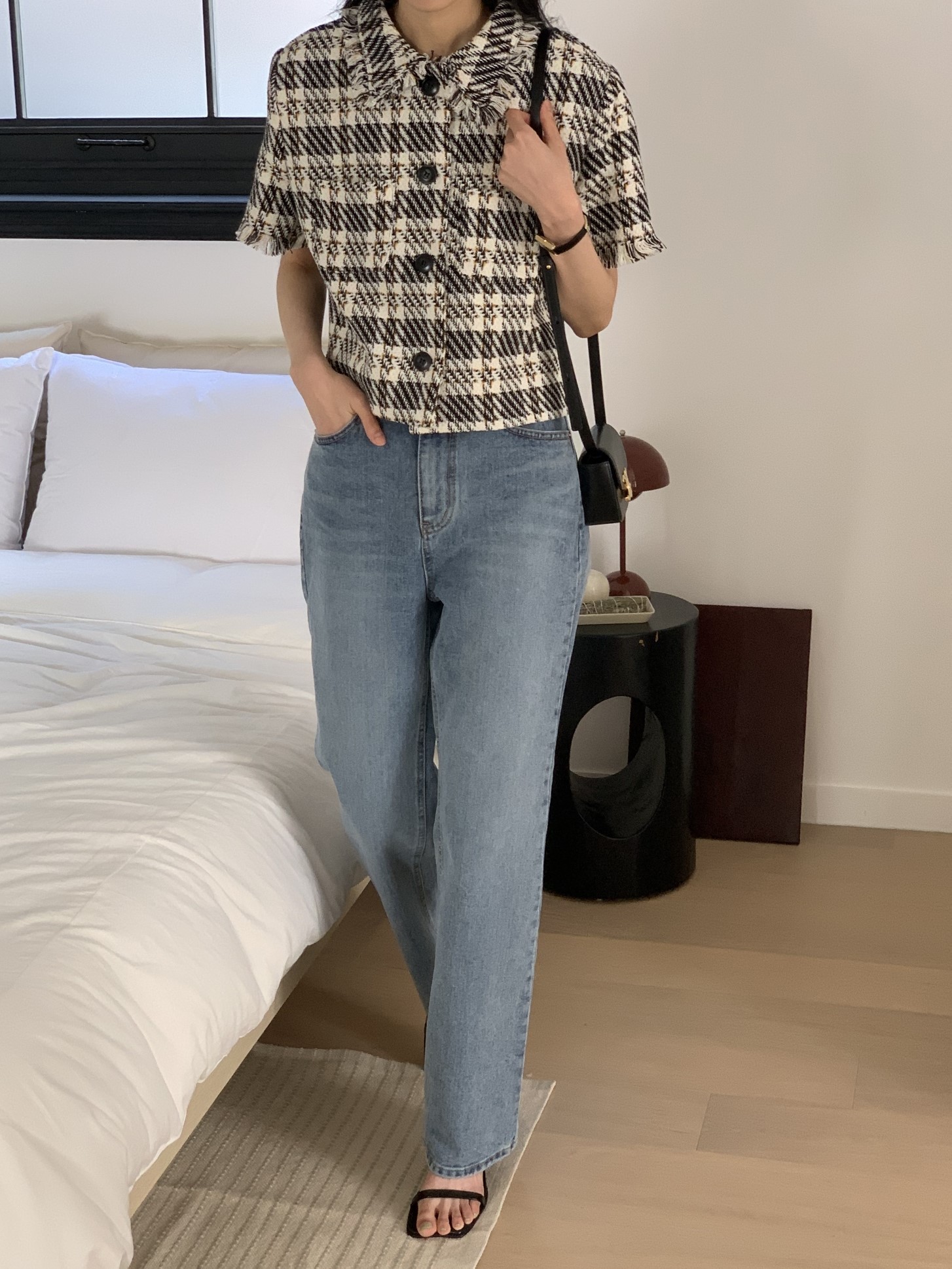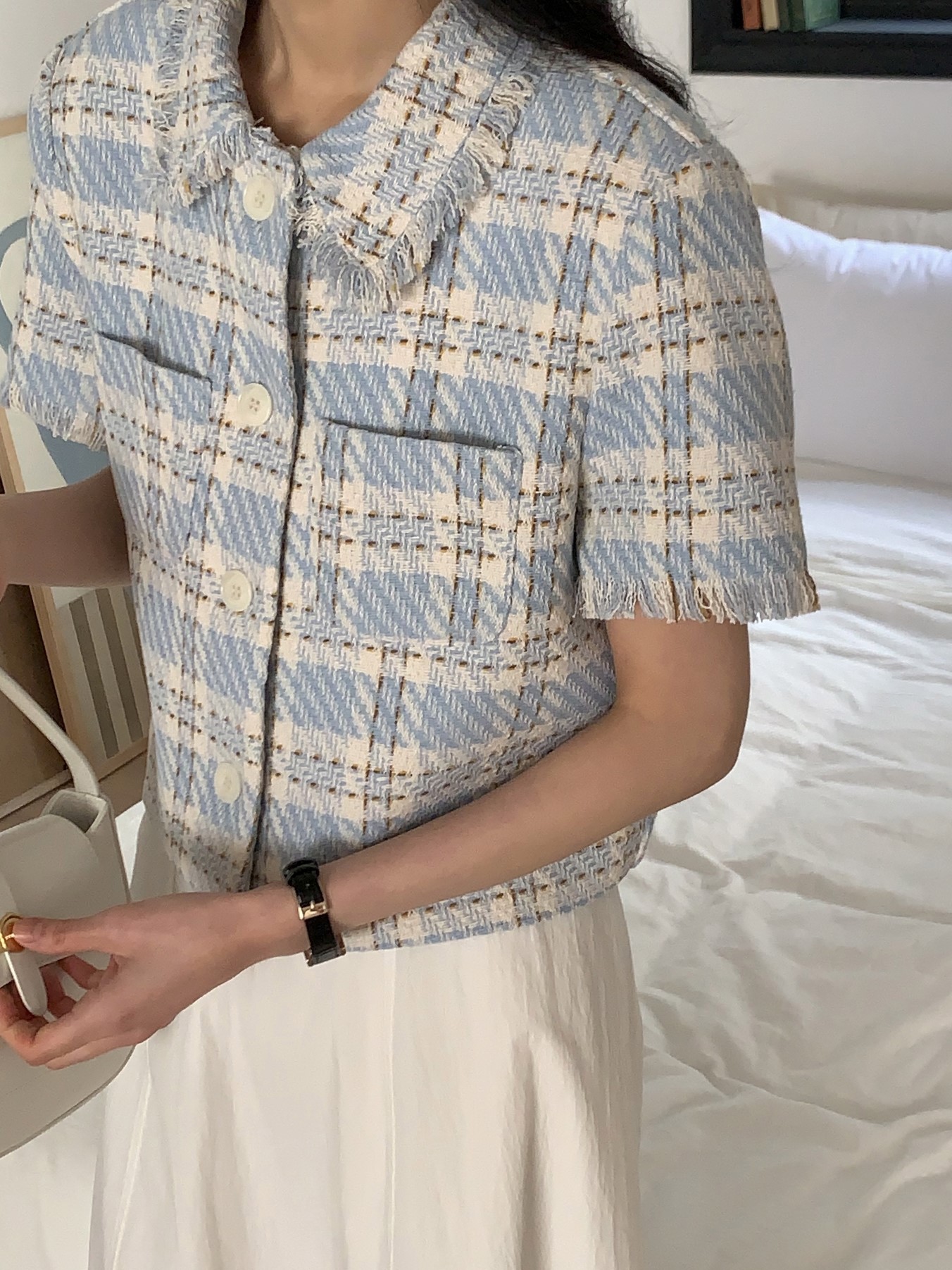 品名:M4) 그랜드 체크 트위드 자켓 ◎※☞颜色:블랙, 소라 ◎※☞尺寸:FREE ◎※☞材质:聚酯 100% ◎※☞注意事项:只能干洗,只能手洗,不能手洗,机洗,不能使用漂白剂,不能烘干,不能熨烫,不能曲折 翻译