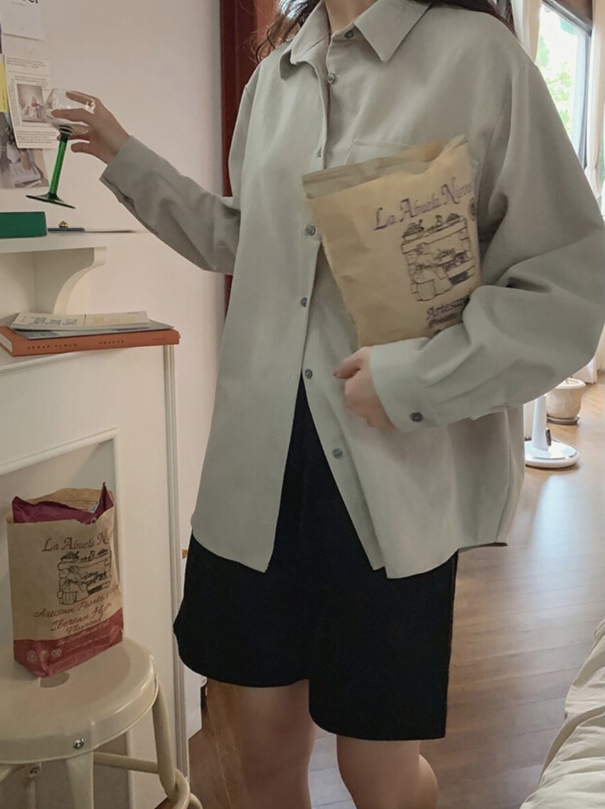 品名:A1) 에보니 셔츠 ◎※☞颜色:그레이, 화이트 ◎※☞尺寸:FREE ◎※☞材质:纯棉 60%,人造纤维 40% 翻译