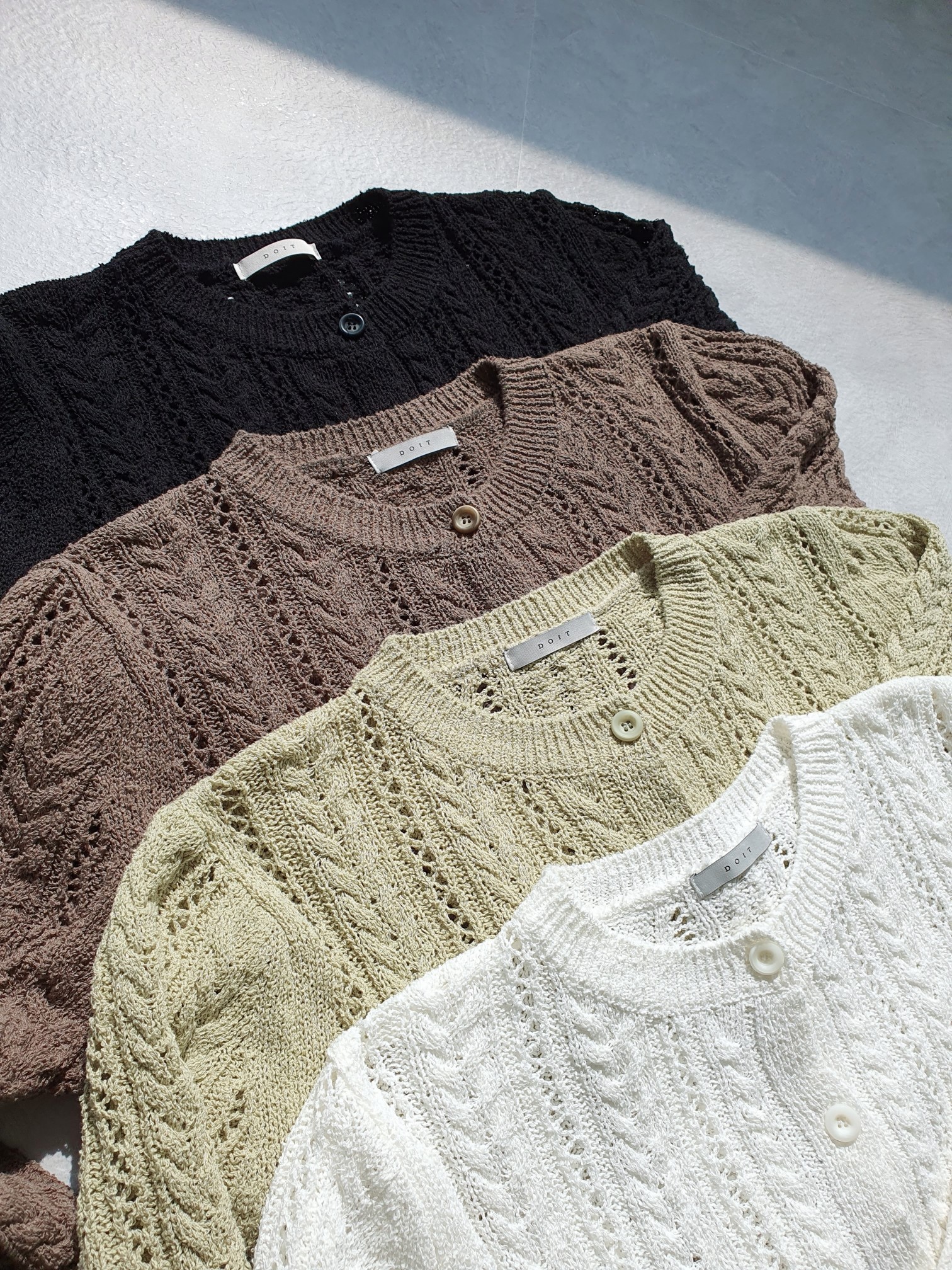 品名:이프가디건 ◎※☞颜色:브라운, 블랙, 아이보리, 연두 ◎※☞尺寸:FREE ◎※☞材质:纯棉 100% 翻译