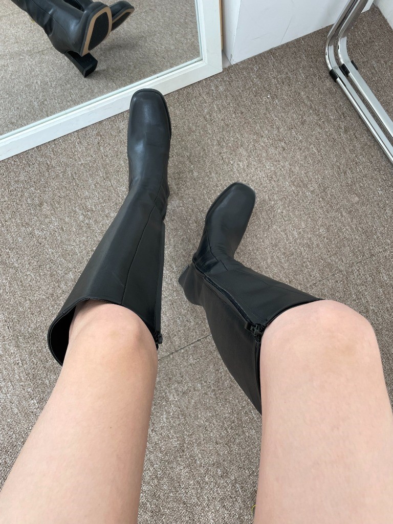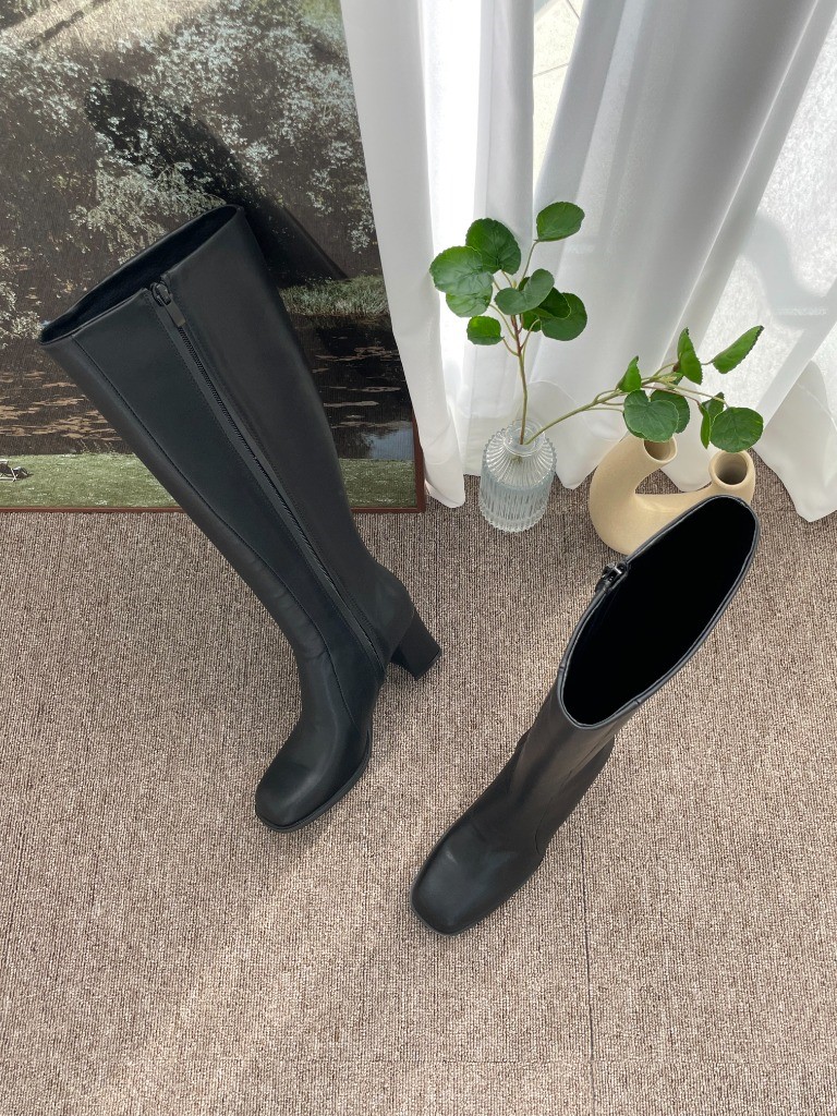 品名:1068 7cm 슬림 스퀘어 통굽 롱부츠 ◎※☞颜色:베이지, 블랙 ◎※☞尺寸:225, 230, 235, 240, 245, 250 ◎※☞材质:合成皮革 0% 翻译