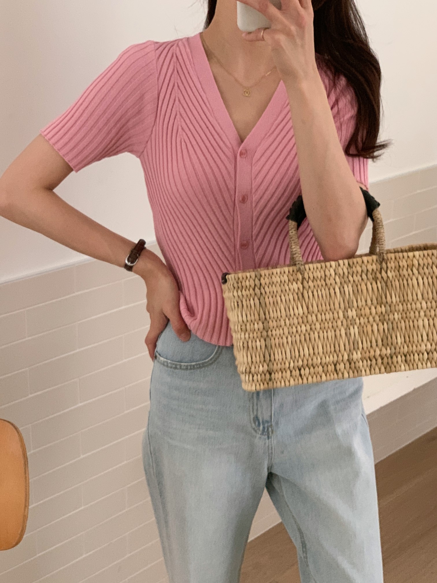 品名:사선쿨가디건 ◎※☞颜色:블랙, 아이보리, 코발트블루, 핑크 ◎※☞尺寸:FREE ◎※☞材质:尼龙 30%,人造纤维 70% 翻译