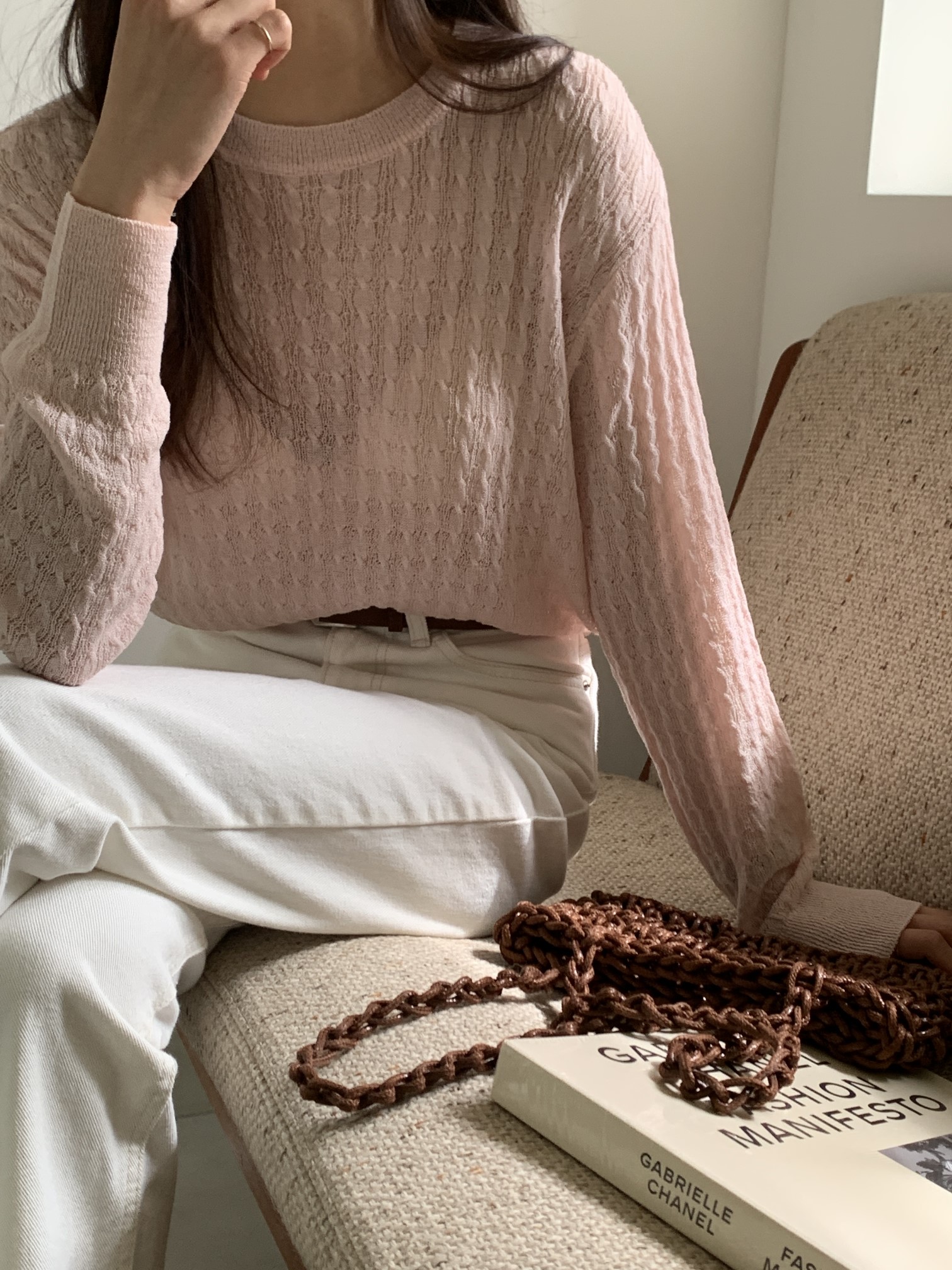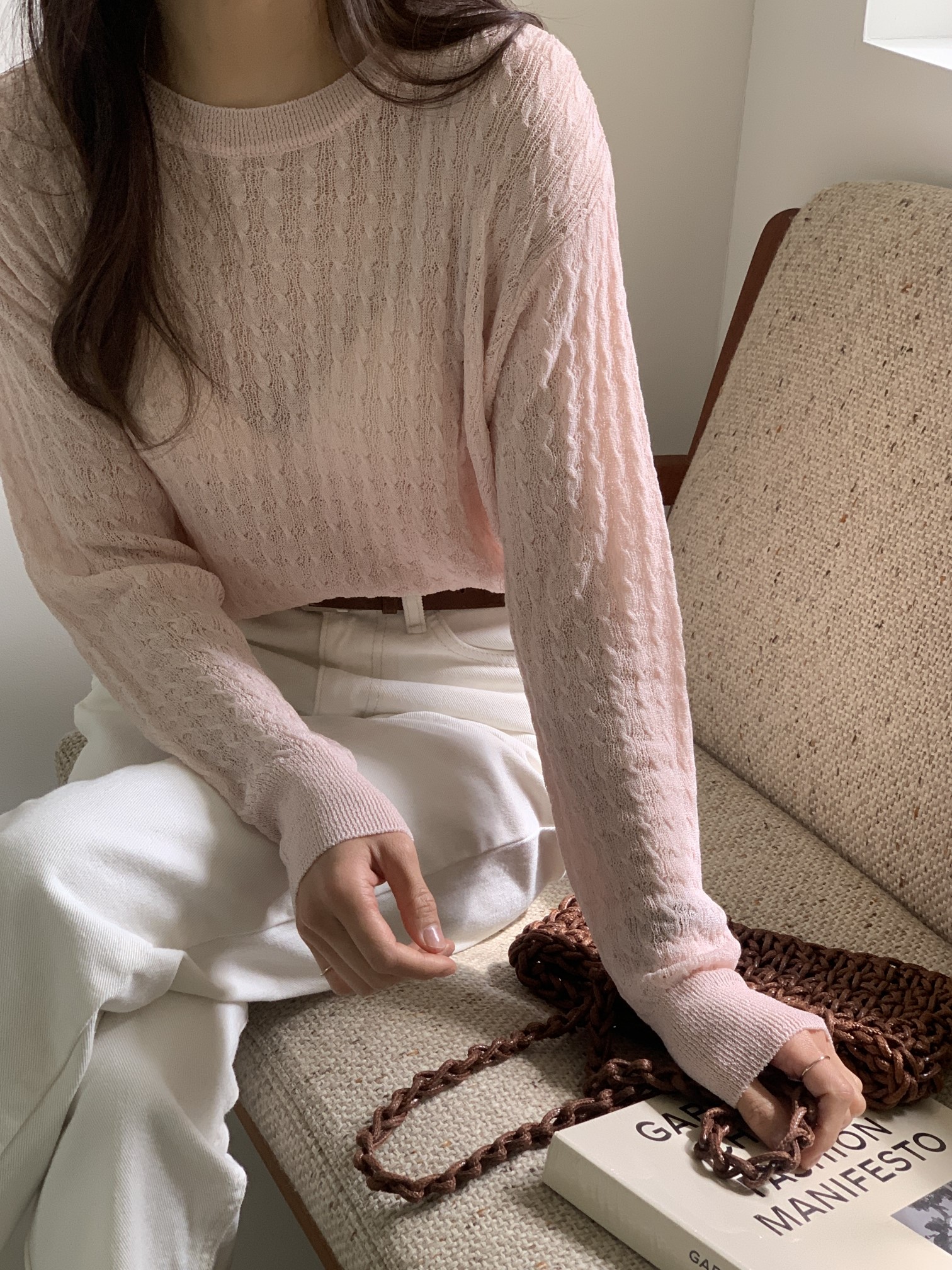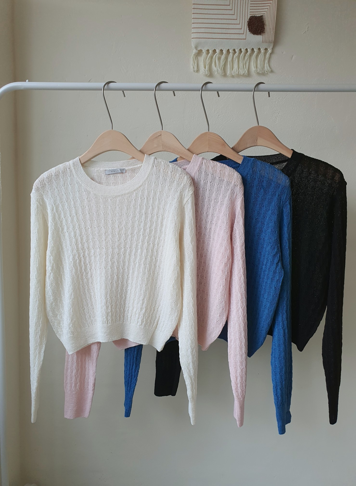 品名:샤밍꽈배기니트 ◎※☞颜色:블랙, 아이보리, 연핑크, 코발트블루 ◎※☞尺寸:FREE ◎※☞材质:腈纶 65%,尼龙 35% 翻译
