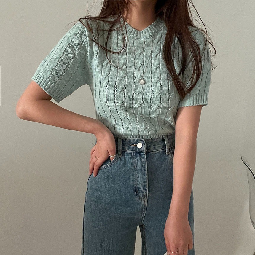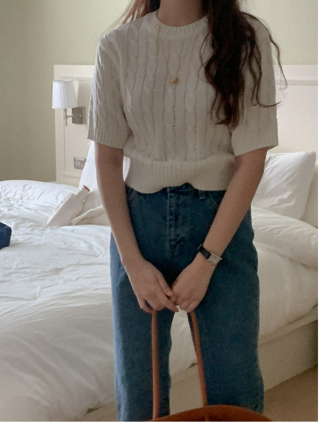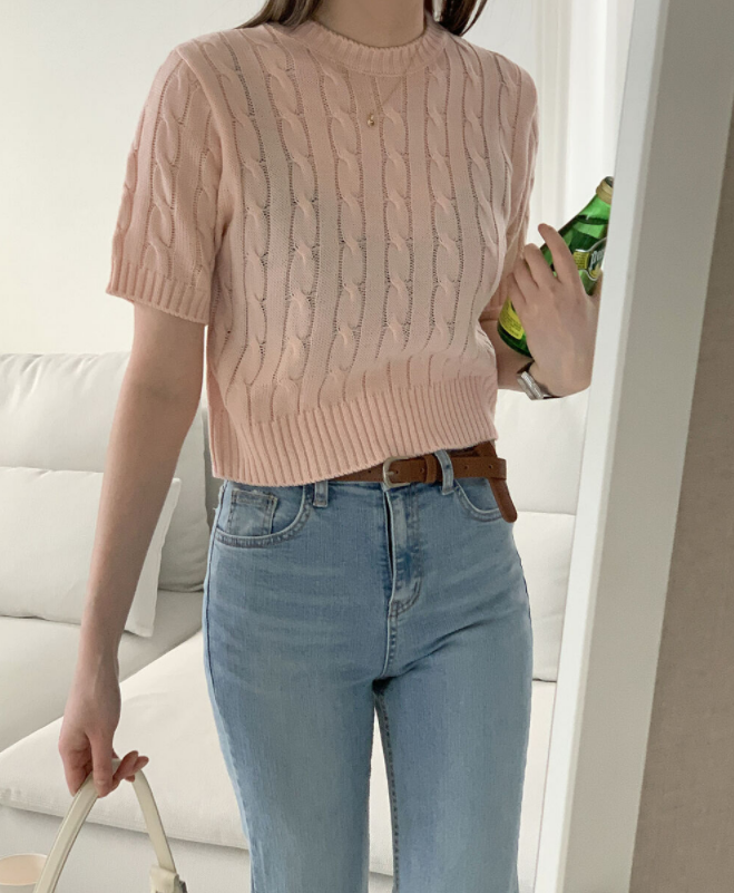 品名:플랫NT(케이블 크롭 하프 니트) ◎※☞颜色:그레이, 민트, 아이보리, 핑크 ◎※☞尺寸:FREE ◎※☞材质:腈纶 100% 翻译