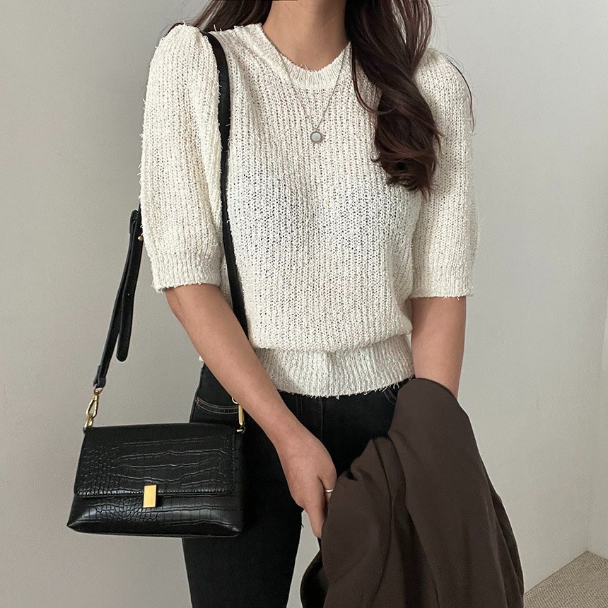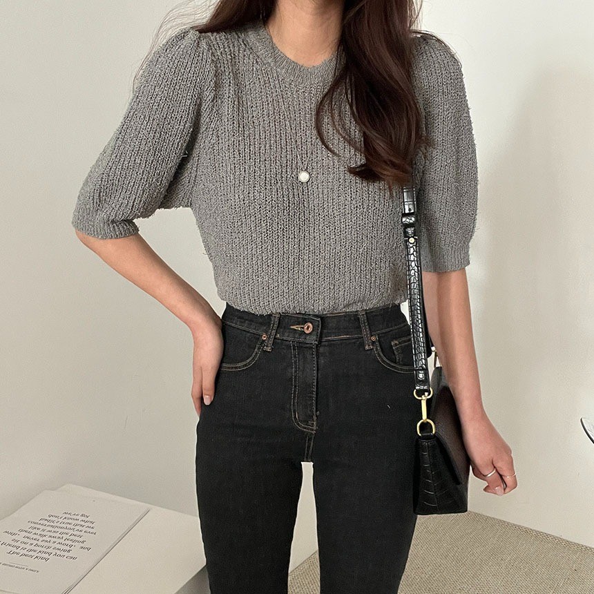 品名:앙글로NT(신상 돼지꼬리원사 퍼프 니트) ◎※☞颜色:그레이, 아이보리, 옐로우, 핑크 ◎※☞尺寸:FREE ◎※☞材质:腈纶 100% 翻译