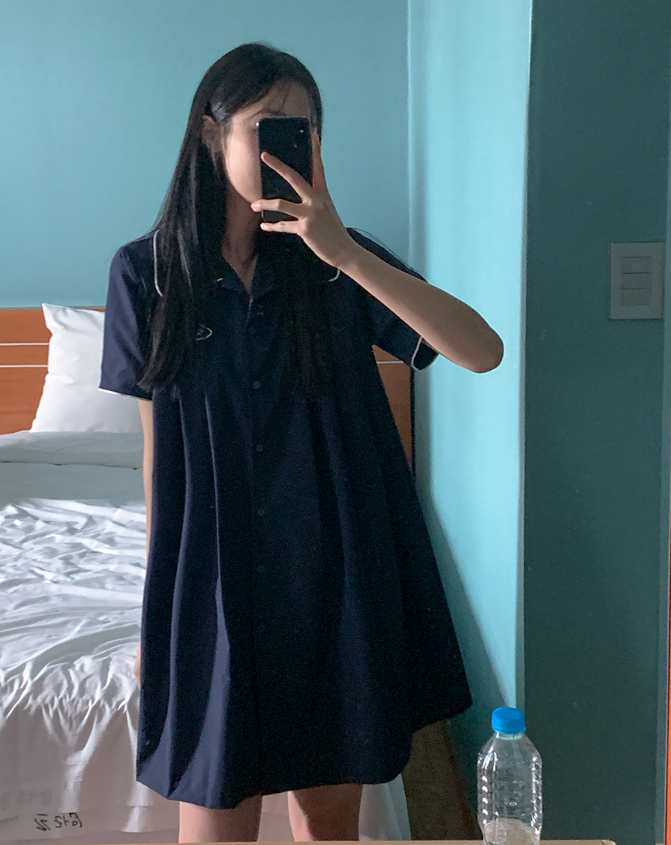品名:와퍼OPS(와펜 삥줄 카라 원피스) ◎※☞颜色:네이비, 화이트 ◎※☞尺寸:FREE ◎※☞材质:天丝 100% ◎※☞注意事项:只能干洗,只能手洗,不能手洗,机洗,不能使用漂白剂,不能烘干,不能熨烫,不能曲折