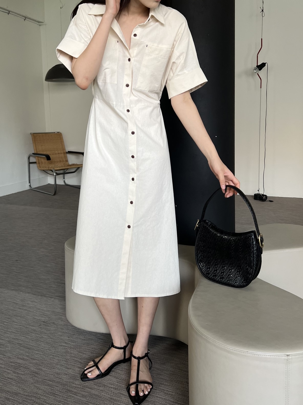 品名:简约纯棉短袖衬衫连衣裙 ◎※☞颜色:차콜, 크림 ◎※☞尺寸:FREE ◎※☞材质:纯棉 100% ◎※☞注意事项:只能干洗,只能手洗,不能手洗,机洗,不能使用漂白剂,不能烘干,不能熨烫,不能曲折 翻译