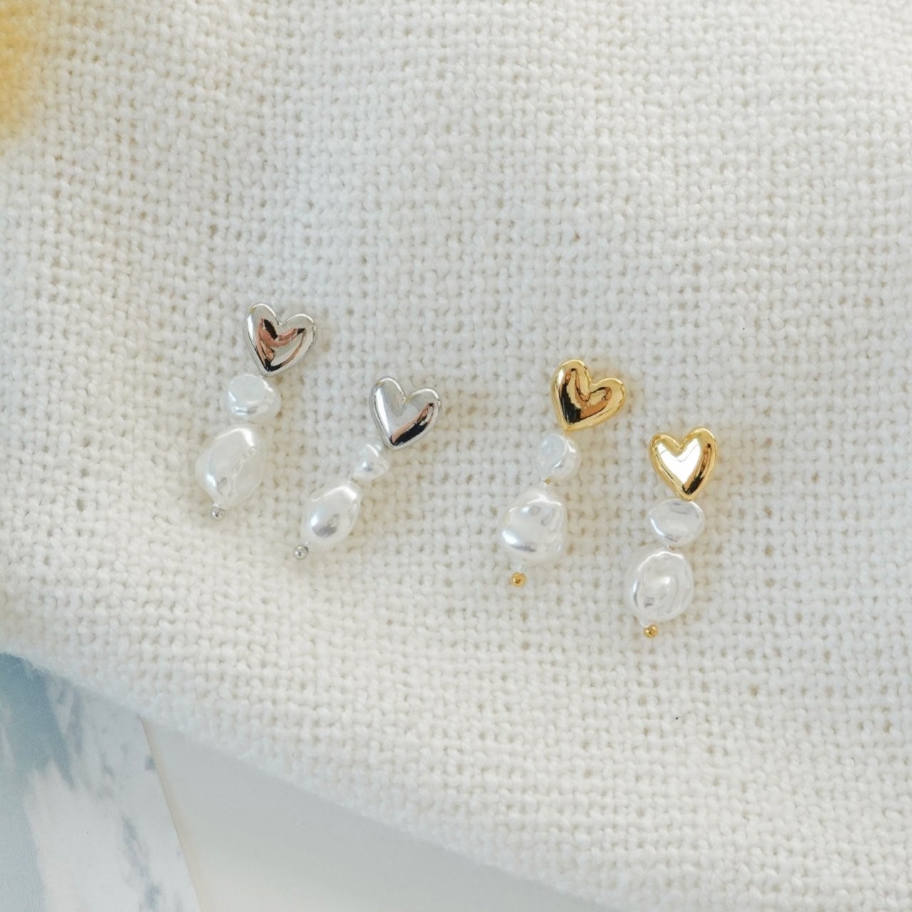 品名:E3035 하트 진주 귀걸이 ◎※☞颜色:골드, 실버 ◎※☞尺寸:FREE ◎※☞材质:镀金 0% 翻译