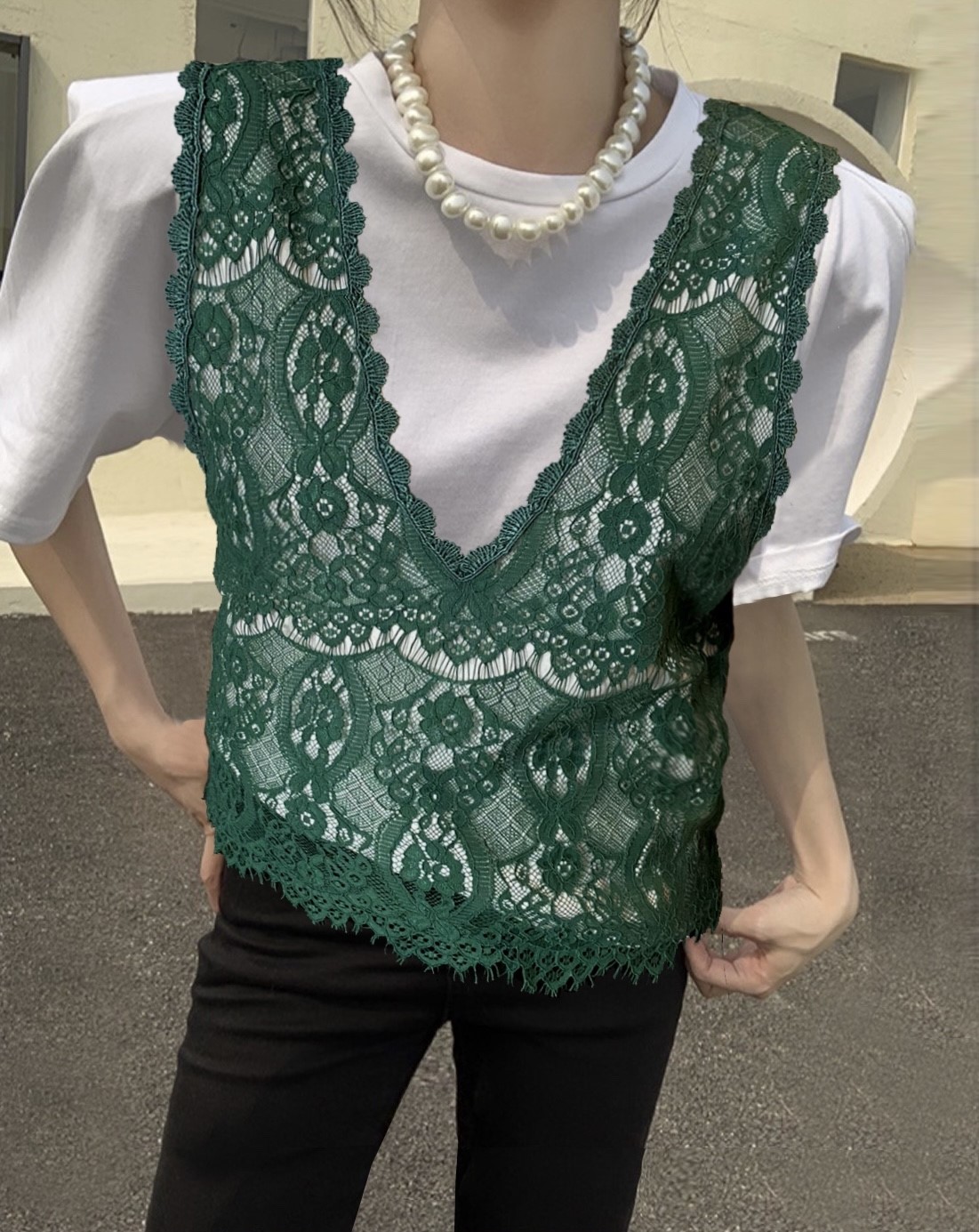 品名:💚라라 뷔스티에 출시(레이스조끼) ◎※☞颜色:그레이, 그린, 남색 ◎※☞尺寸:FREE ◎※☞材质:尼龙 100% ◎※☞注意事项:只能干洗,只能手洗,不能手洗,机洗,不能使用漂白剂,不能烘干,不能熨烫,不能曲折