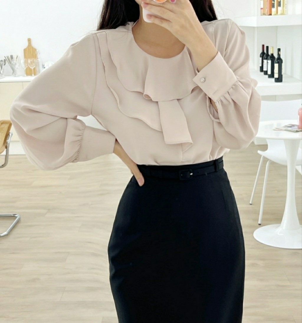 品名:다린 스판 블라우스#인기#봄#여름#프릴 ◎※☞颜色:핑크베이지 ◎※☞尺寸:FREE ◎※☞材质:聚酯 95%,스판 5% ◎※☞注意事项:只能干洗,只能手洗,不能手洗,机洗,不能使用漂白剂,不能烘干,不能熨烫,不能曲折