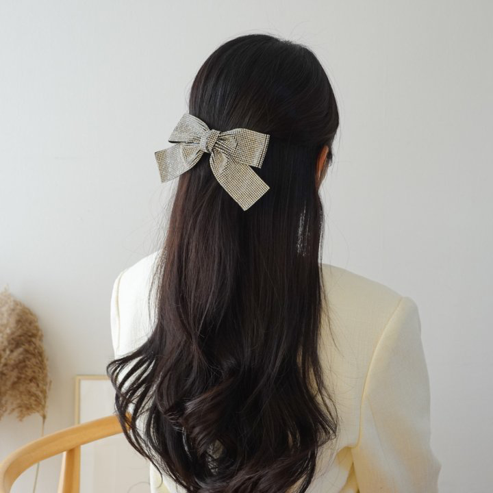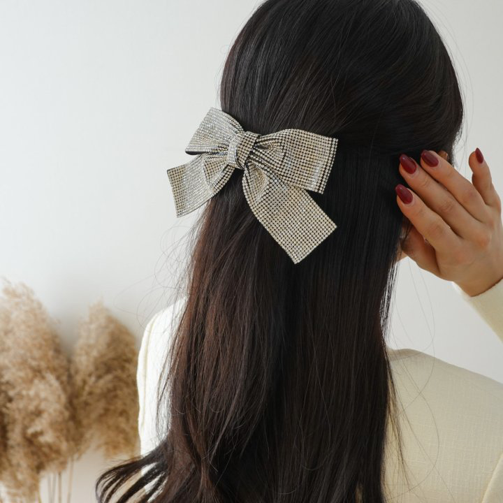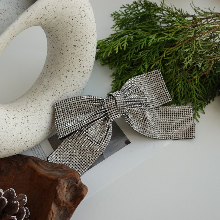 品名:H1671 큐빅 리본 헤어핀 ◎※☞颜色:실버 ◎※☞尺寸:FREE ◎※☞材质:큐빅 50%,聚酯 30%,도감 20% 翻译