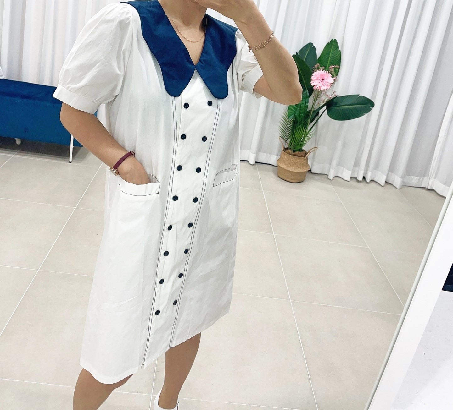 品名:물결카라원피스 #여성상의캐주얼시크섹시봄여름하의하객패션 ◎※☞颜色:네이비, 아이보리 ◎※☞尺寸:FREE ◎※☞材质:纯棉 100% 翻译