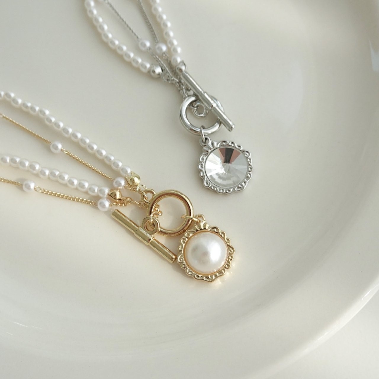 品名:N3018 진주 목걸이 ◎※☞颜色:골드(진주), 실버(크리스탈) ◎※☞尺寸:FREE ◎※☞材质:镀金 0% 翻译