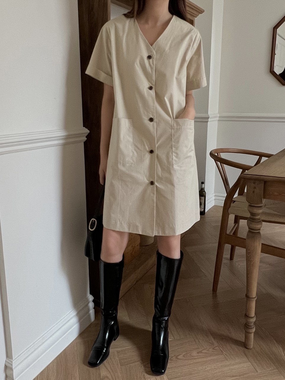 品名:简约宽松直筒纯棉连衣裙 ◎※☞颜色:베이지, 블랙 ◎※☞尺寸:FREE ◎※☞材质:纯棉 100% ◎※☞注意事项:只能干洗,只能手洗,不能手洗,机洗,不能使用漂白剂,不能烘干,不能熨烫,不能曲折 翻译