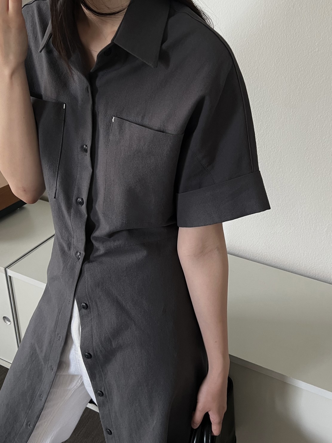 品名:简约纯棉短袖衬衫连衣裙 ◎※☞颜色:차콜, 크림 ◎※☞尺寸:FREE ◎※☞材质:纯棉 100% ◎※☞注意事项:只能干洗,只能手洗,不能手洗,机洗,不能使用漂白剂,不能烘干,不能熨烫,不能曲折 翻译