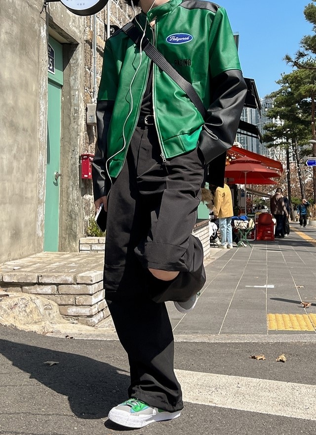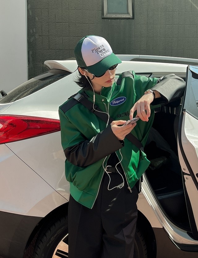 品名:레이싱 레더자켓 New ◎※☞颜色:그린, 화이트 ◎※☞尺寸:FREE ◎※☞材质:聚酯 60%,人造纤维 40% 翻译