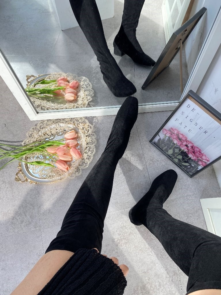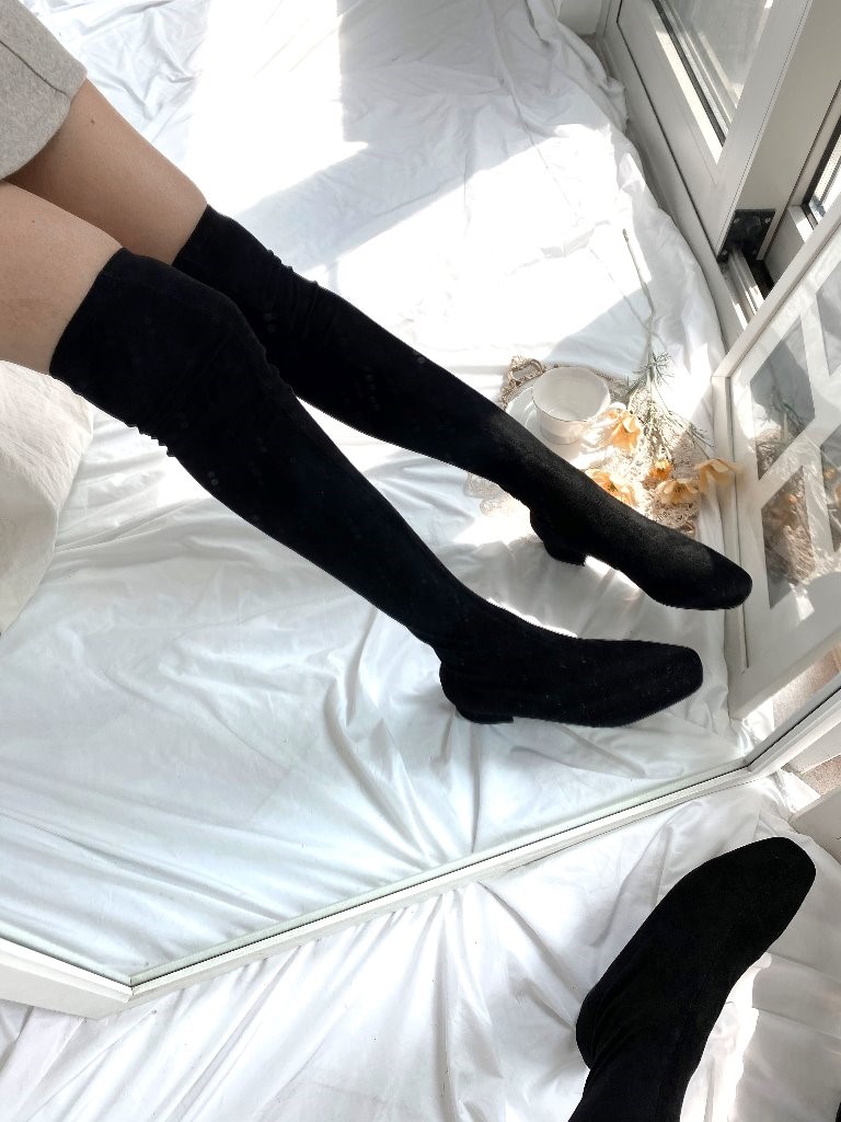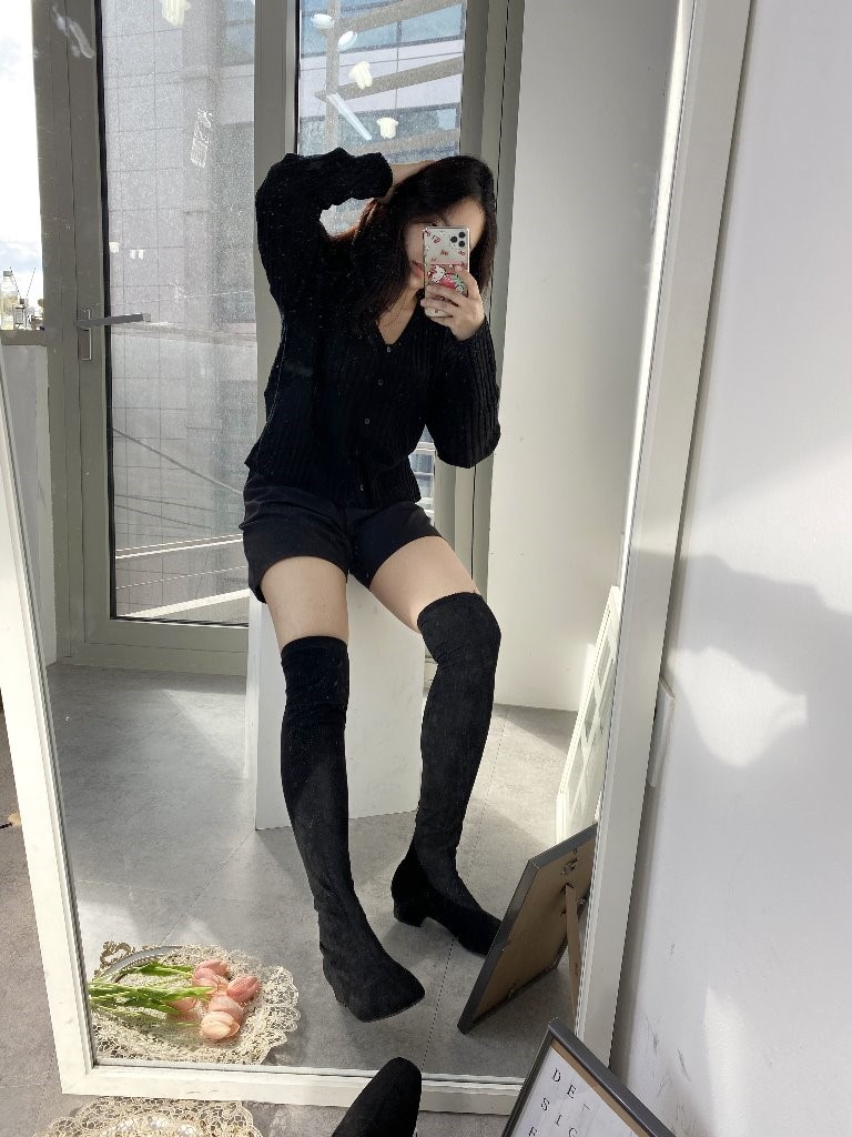 品名:634 3cm굽 스판 로우굽 롱부츠 ◎※☞颜色:블랙 ◎※☞尺寸:225, 230, 235, 240, 245, 250 ◎※☞材质:合成皮革 0% 翻译
