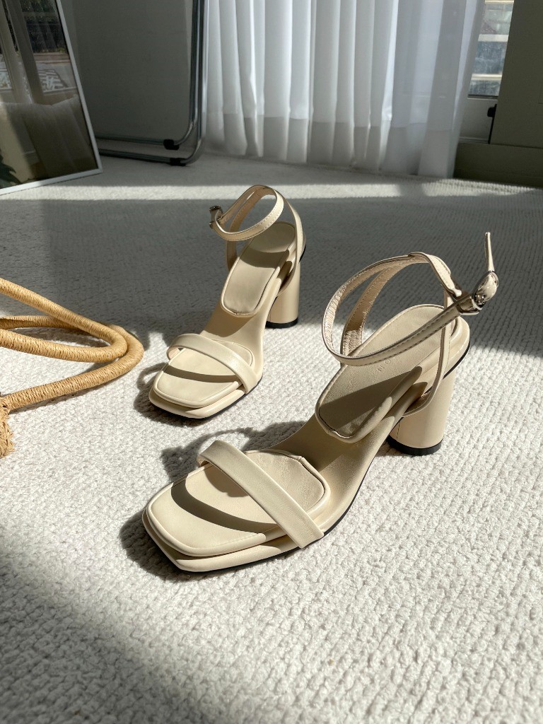 品名:1060 7.5cm 스트랩 통굽 샌들힐 ◎※☞颜色:베이지, 브라운, 블랙, 화이트 ◎※☞尺寸:225, 230, 235, 240, 245, 250 ◎※☞材质:合成皮革 0% 翻译