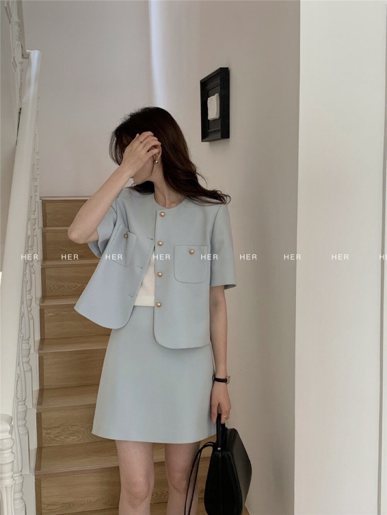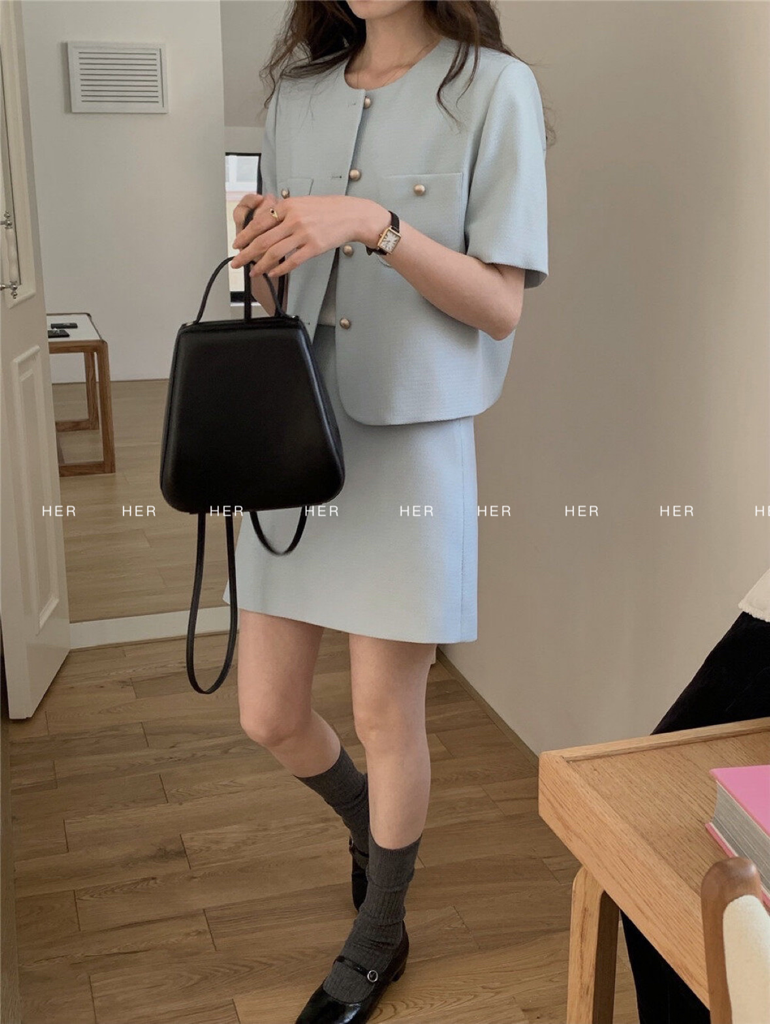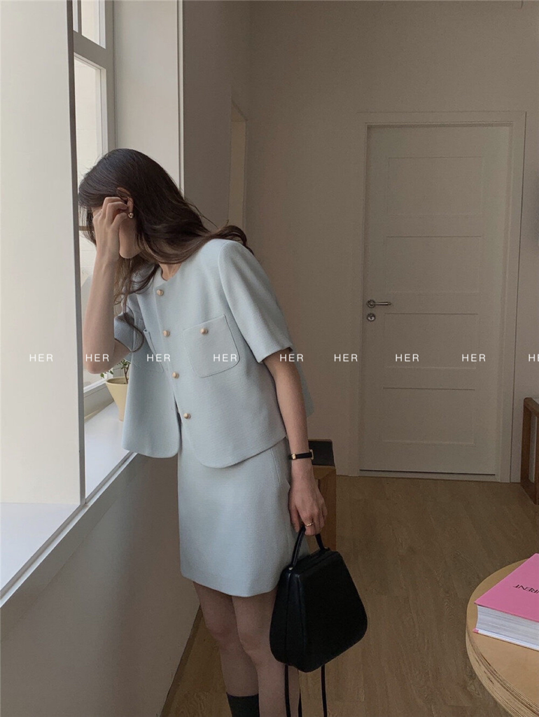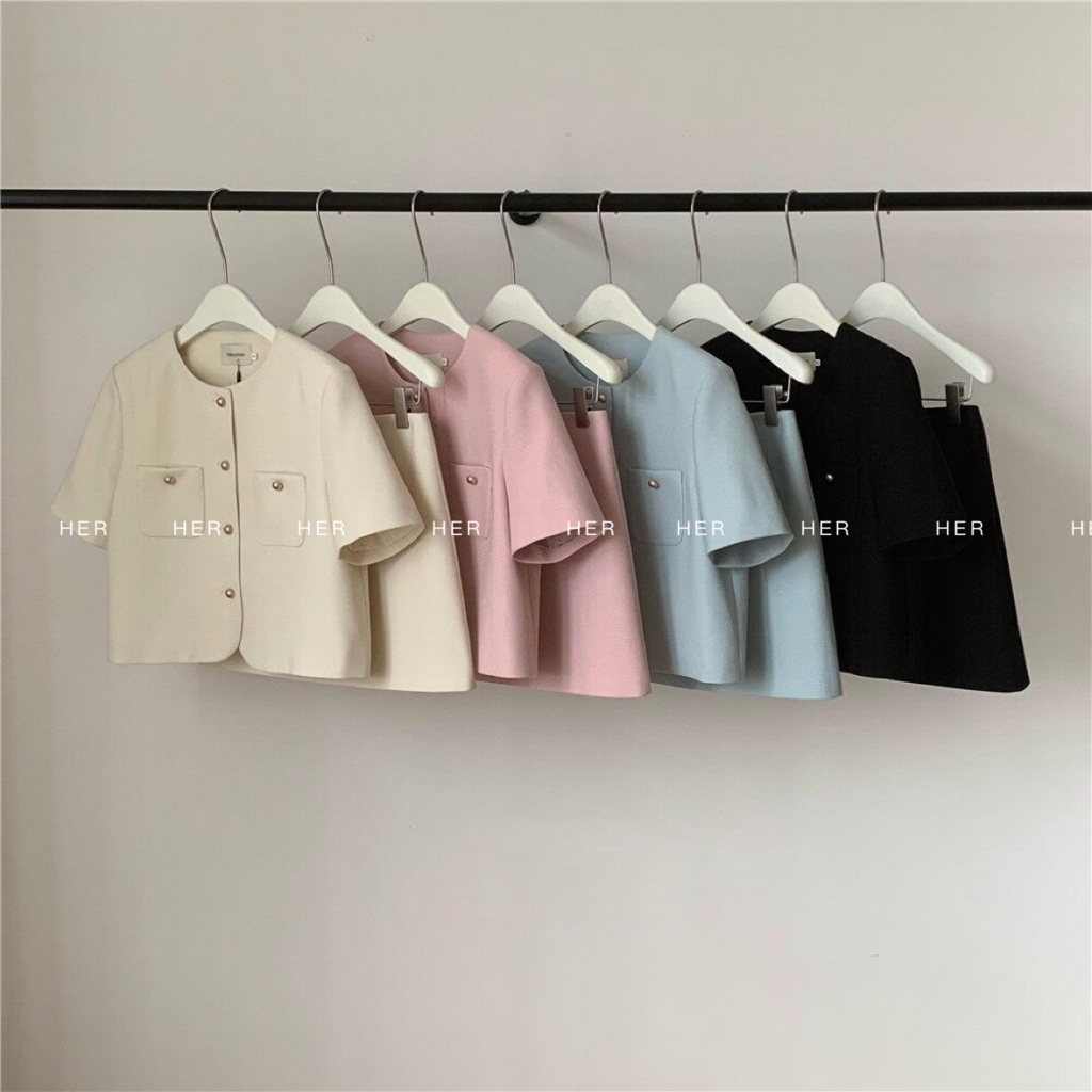 品名:포켓 트위드set ◎※☞颜色:블랙, 소라, 아이보리, 핑크 ◎※☞尺寸:M, S ◎※☞材质:매장문의 100% 翻译