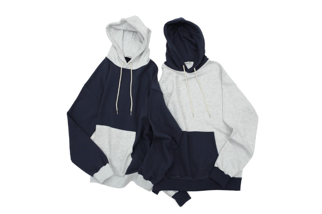品名:#kd 배색 후드 ◎※☞颜色:그레이, 네이비 ◎※☞尺寸:FREE ◎※☞材质:纯棉 100% 翻译