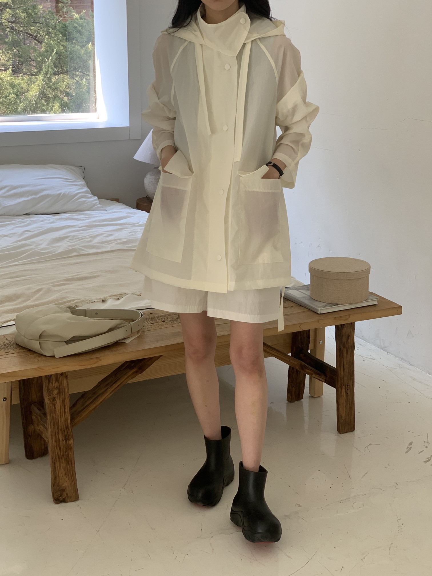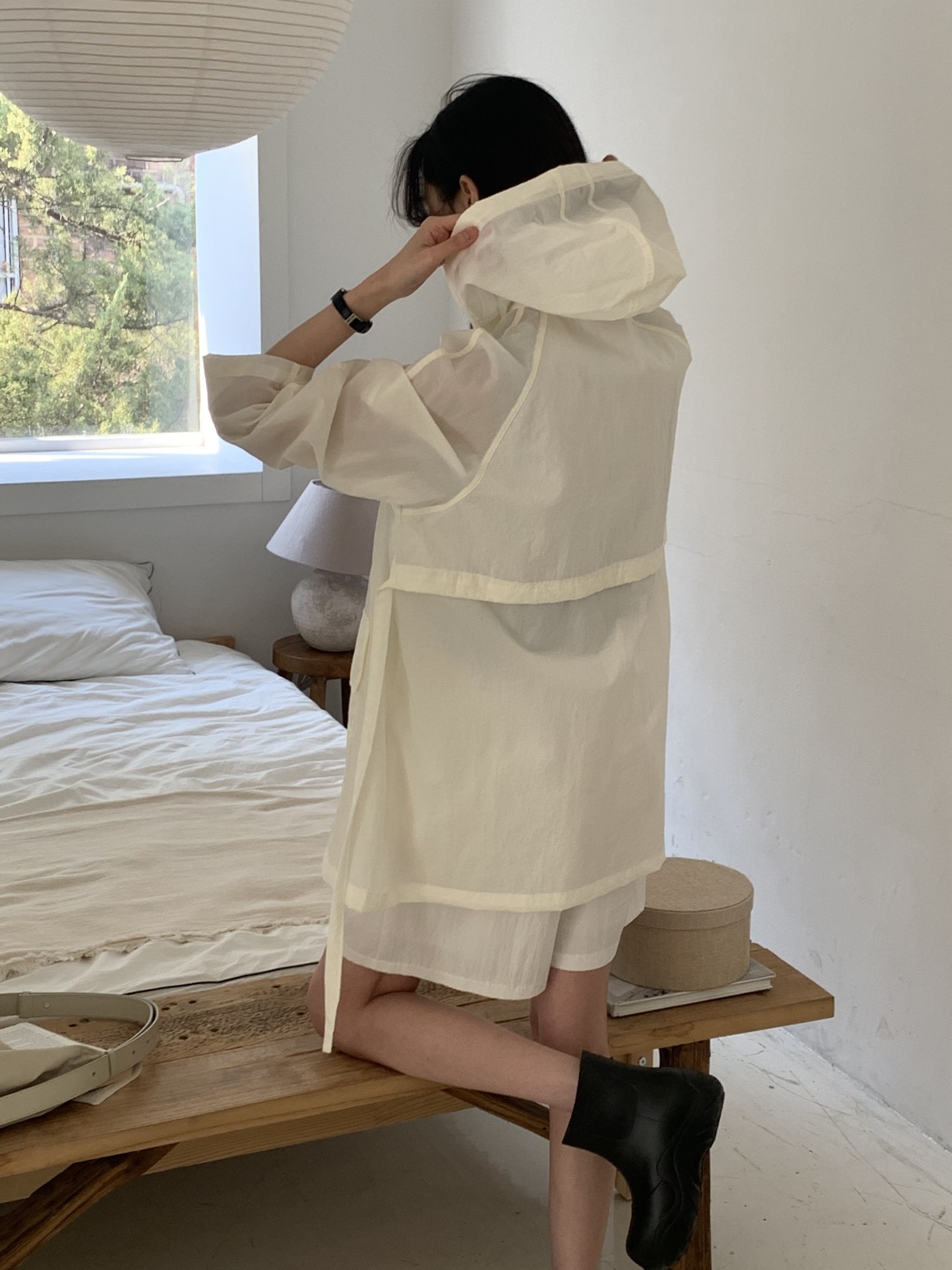 品名:M5) 플랩 후드 JP ◎※☞颜色:블랙, 아이보리 ◎※☞尺寸:FREE ◎※☞材质:尼龙 100% ◎※☞注意事项:只能干洗,只能手洗,不能手洗,机洗,不能使用漂白剂,不能烘干,不能熨烫,不能曲折 翻译