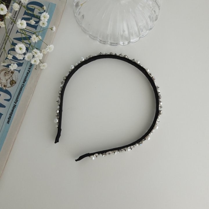 品名:H3083 진주&크리스탈 머리띠 ◎※☞颜色:블랙 ◎※☞尺寸:F ◎※☞材质:珍珠 0% 翻译