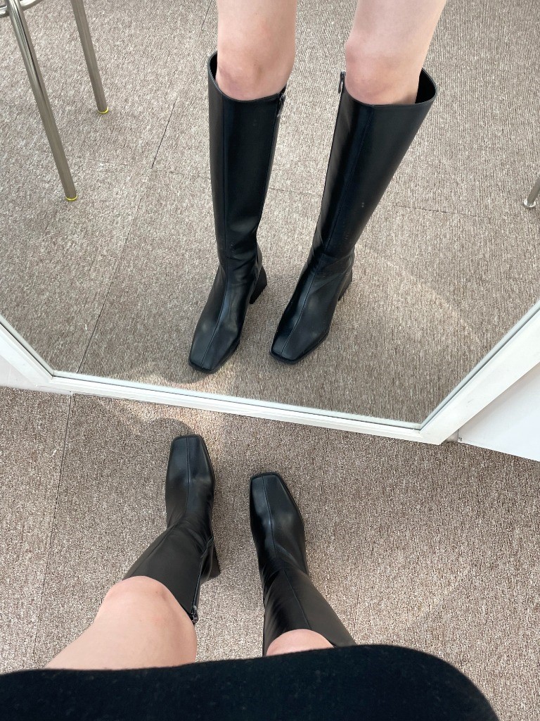 品名:1049 7cm 모카 스퀘어 롱부츠 ◎※☞颜色:모카, 블랙 ◎※☞尺寸:225, 230, 235, 240, 245, 250 ◎※☞材质:合成皮革 0% 翻译
