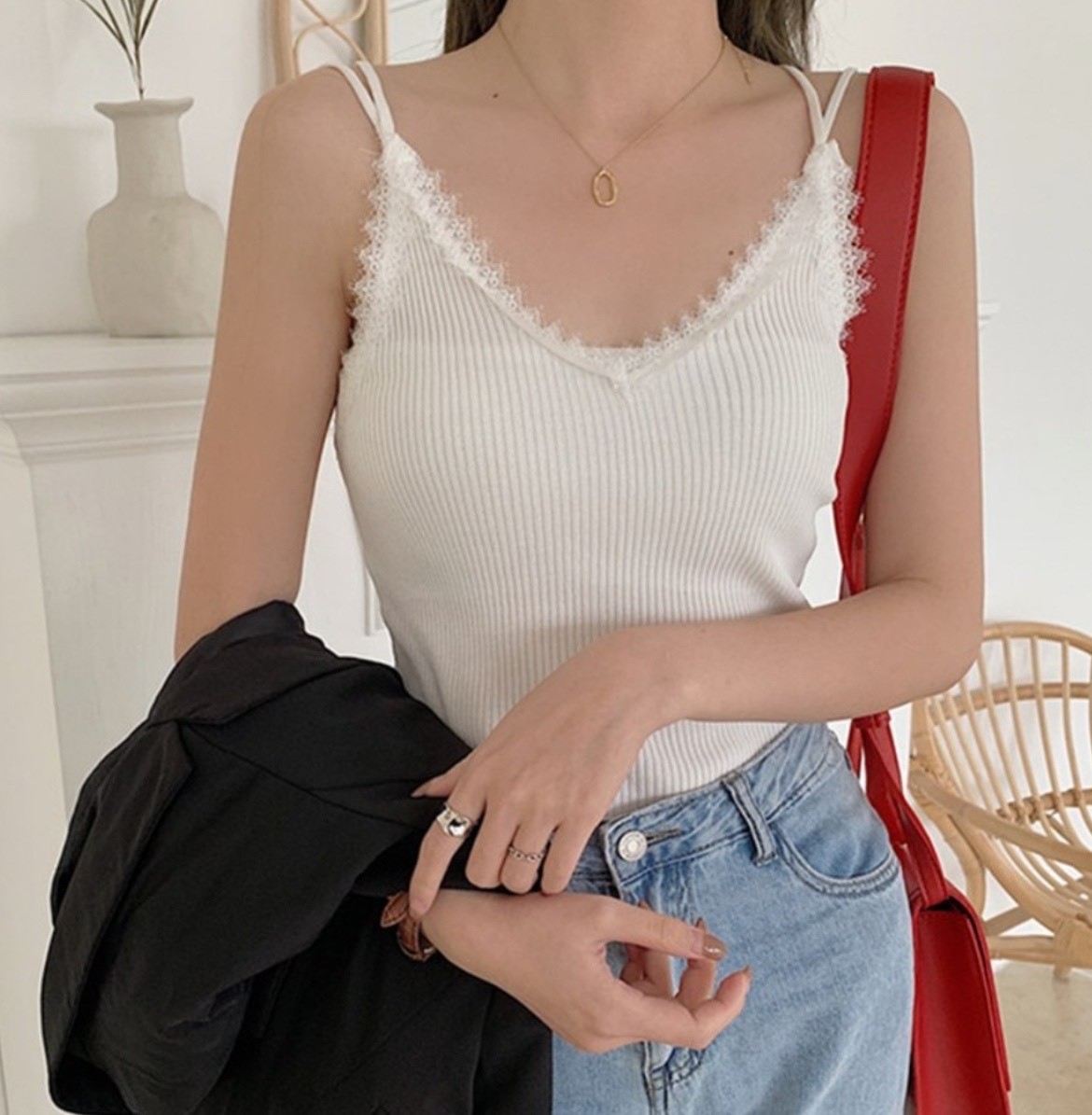 品名:세일 레이스끈나시 ◎※☞颜色:블랙, 아이보리 ◎※☞尺寸:FREE ◎※☞材质:纯棉 100% 翻译