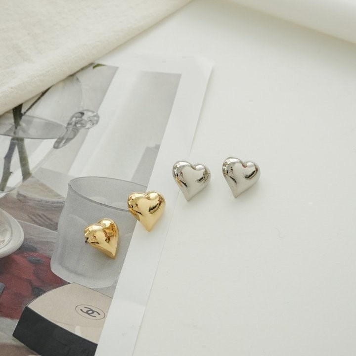品名:E1447 볼드 하트 귀걸이 ◎※☞颜色:골드, 실버 ◎※☞尺寸:FREE ◎※☞材质:镀金 0% 翻译