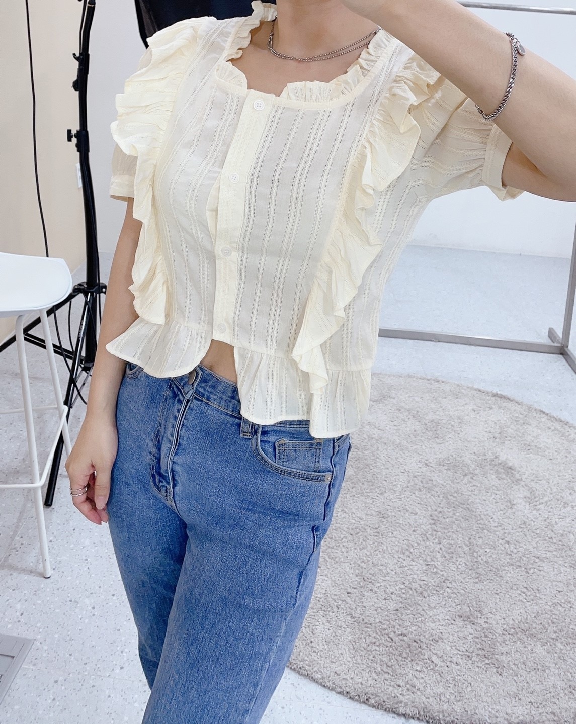 品名:벚꽃블라우스 #여성상의캐주얼시크로맨틱러블리간절기봄여름 ◎※☞颜色:옐로우, 화이트 ◎※☞尺寸:FREE ◎※☞材质:纯棉 100% 翻译