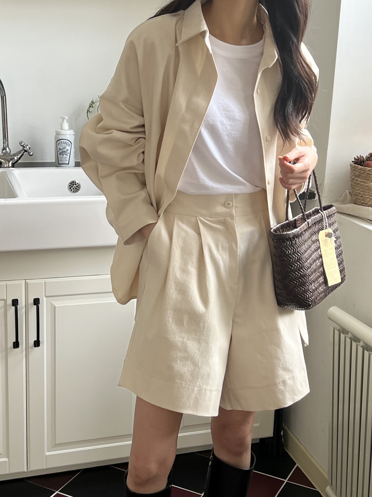 品名:J1) 쏠라 PT ◎※☞颜色:베이지, 블랙 ◎※☞尺寸:FREE ◎※☞材质:聚氨酯 2%,纯棉 98% ◎※☞注意事项:只能干洗,只能手洗,不能手洗,机洗,不能使用漂白剂,不能烘干,不能熨烫,不能曲折 翻译