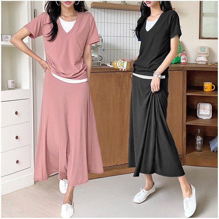 品名:(리즈이너-투피스SET)이너붙어있음,링클프리,롱치마,투피스,훌sk ◎※☞颜色:검T검SK세트, 코발T코발SK세트, 핑T핑SK세트 ◎※☞尺寸:FREE ◎※☞材质:聚酯 95%,弹力 5% 翻译