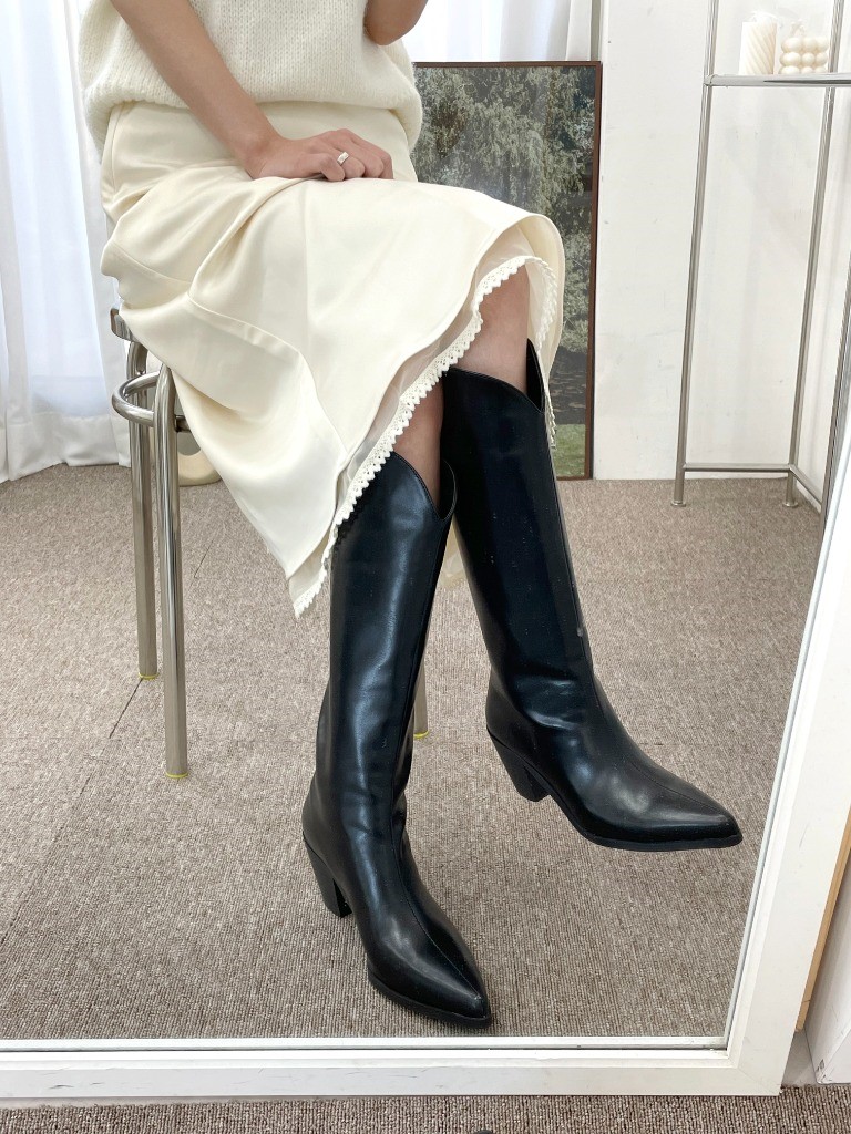 品名:1077 6.5cm 스틸레토 웨스턴 롱부츠 ◎※☞颜色:블랙, 화이트 ◎※☞尺寸:225, 230, 235, 240, 245, 250 ◎※☞材质:合成皮革 0% 翻译