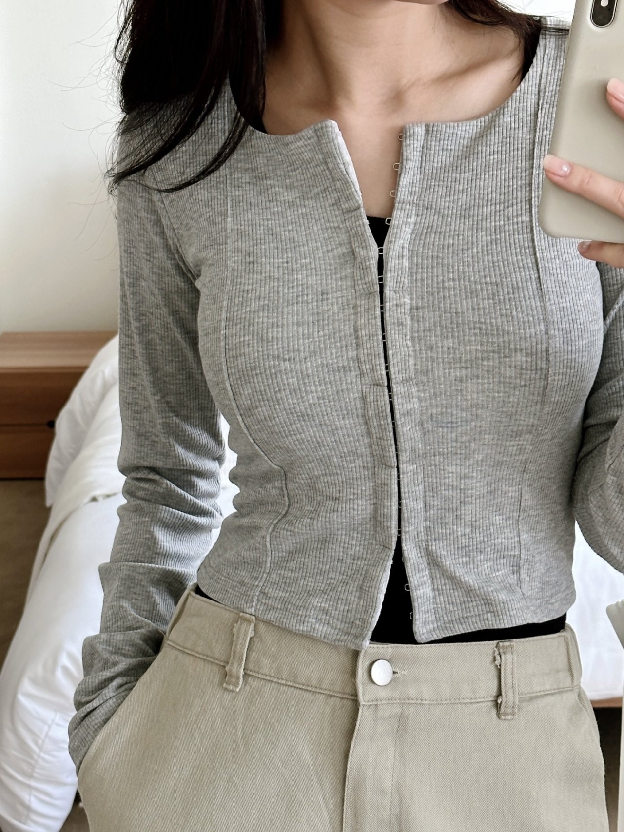 品名:키코가디건(후크 골지 배색 트임 신상) ◎※☞颜色:그레이, 블랙 ◎※☞尺寸:FREE ◎※☞材质:人造纤维 95%,天丝 5% ◎※☞注意事项:只能干洗,只能手洗,不能手洗,机洗,不能使用漂白剂,不能烘干,不能熨烫,不能曲折