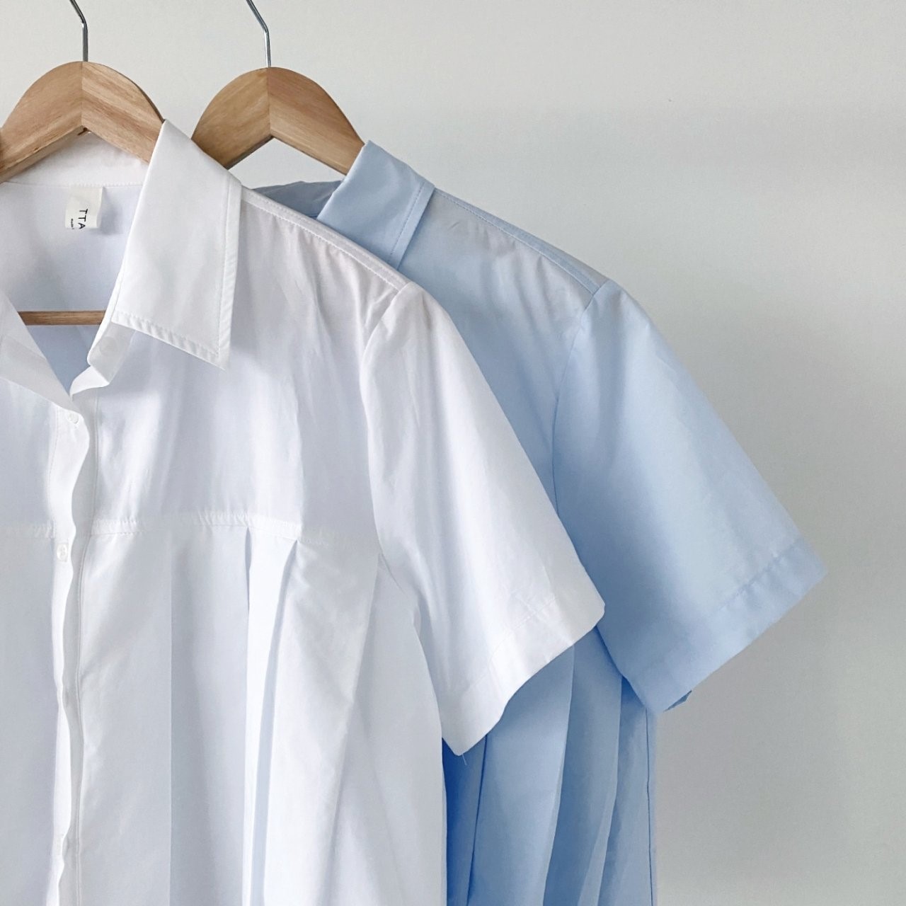 品名:简约纯色百褶纯棉短袖衬衫 ◎※☞颜色:블루, 화이트 ◎※☞尺寸:FREE ◎※☞材质:纯棉 100% 翻译