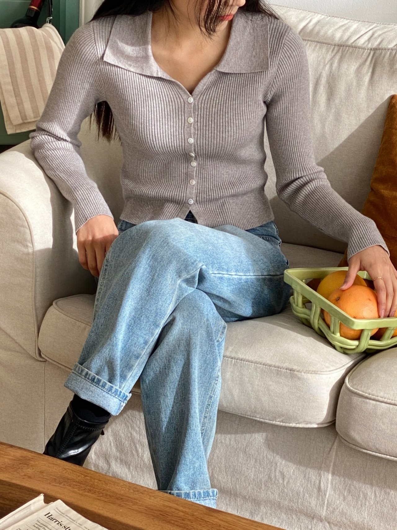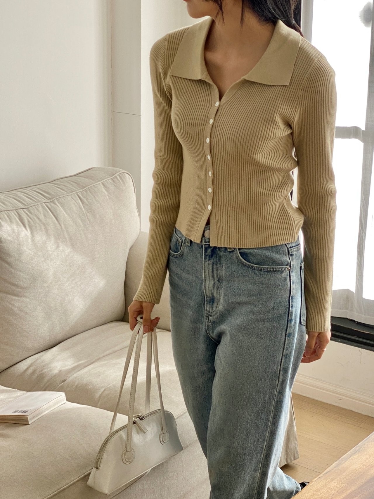 品名:모다가디건 카라니트 골지 베이직 ◎※☞颜色:그레이, 그린, 베이지, 브라운, 블랙, 아이보리, 핑크 ◎※☞尺寸:FREE ◎※☞材质:腈纶 50%,聚酯 50% 翻译