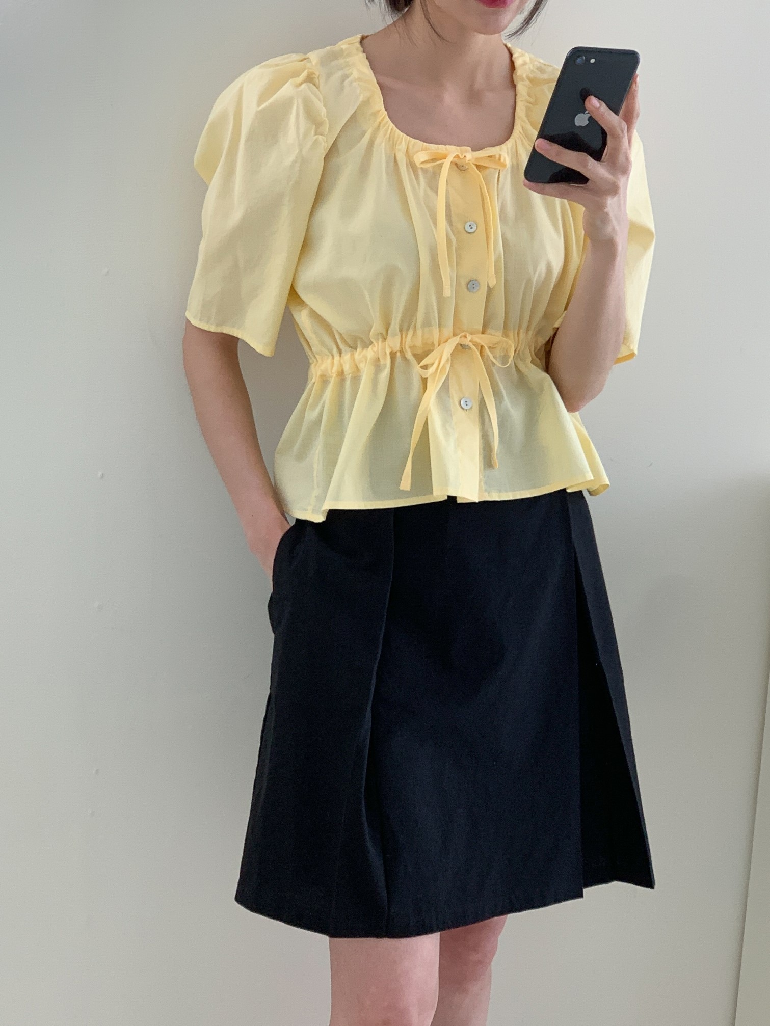 品名:New22 Summer#) 可爱时尚泡泡袖松紧腰短袖衬衫上衣 ◎※☞颜色:노랑, 보라 ◎※☞尺寸:FREE ◎※☞材质:纯棉 100% ◎※☞注意事项:只能干洗,只能手洗,不能手洗,机洗,不能使用漂白剂,不能烘干,不能熨烫,不能曲折