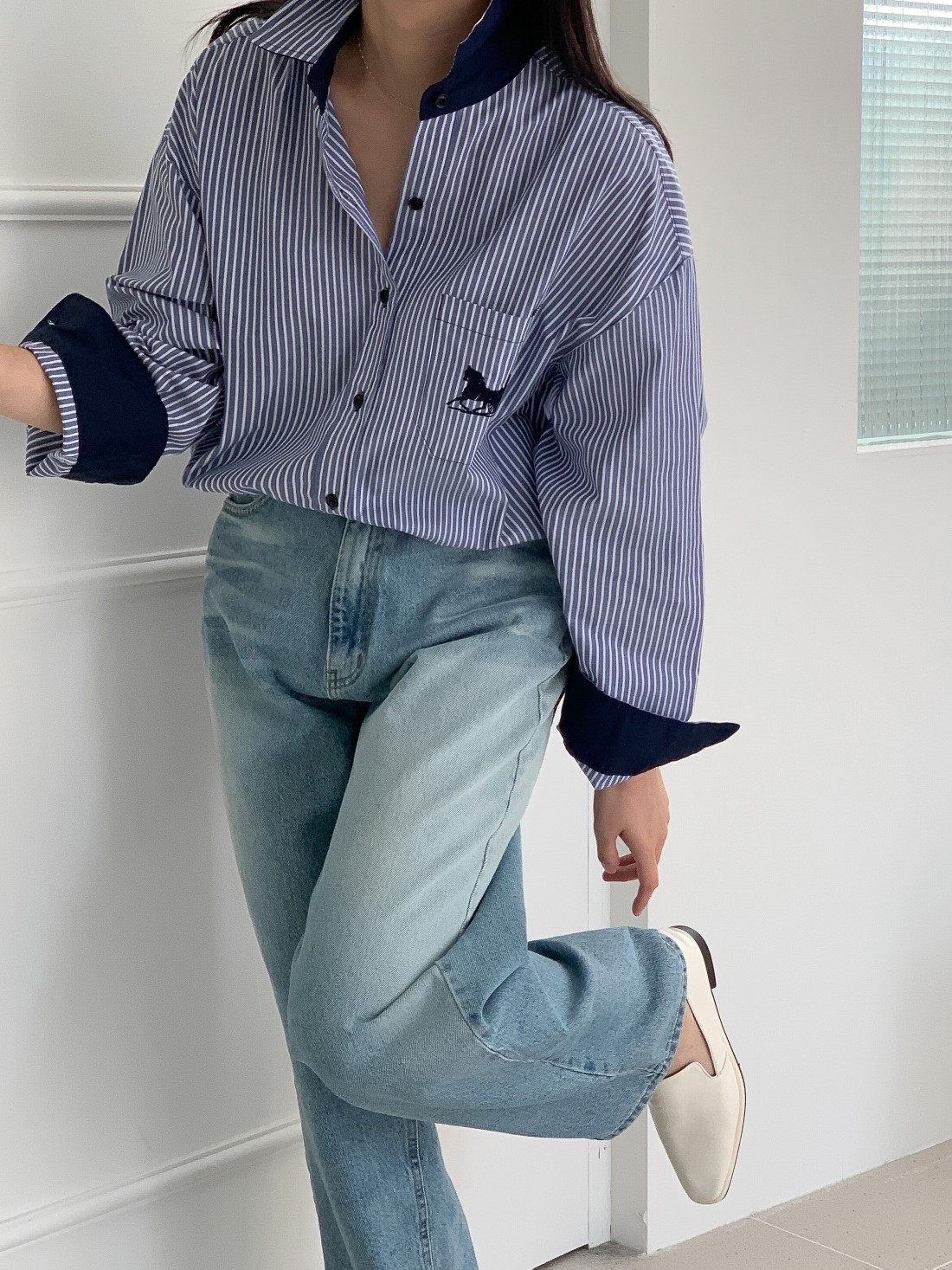 品名:23년 SS 봄신상#) 스트라이프 마차자수 오버핏셔츠 ◎※☞颜色:네이비, 베이지 ◎※☞尺寸:FREE ◎※☞材质:纯棉 100% ◎※☞注意事项:只能干洗,只能手洗,不能手洗,机洗,不能使用漂白剂,不能烘干,不能熨烫,不能曲折