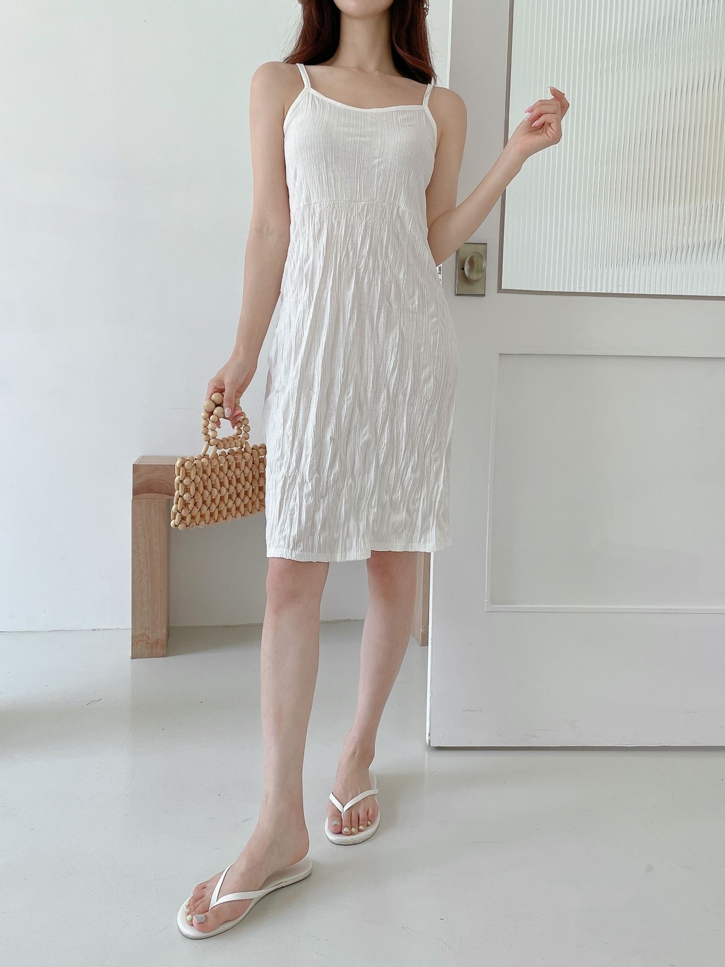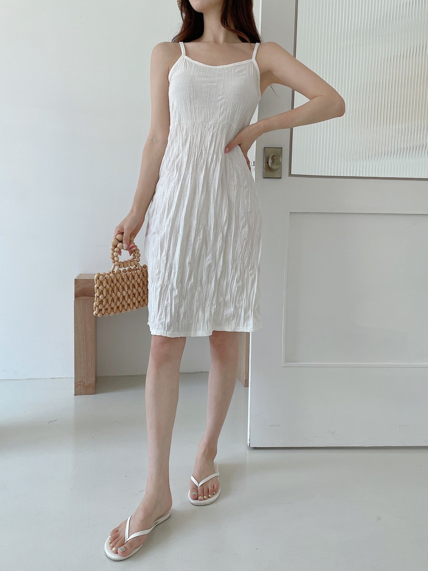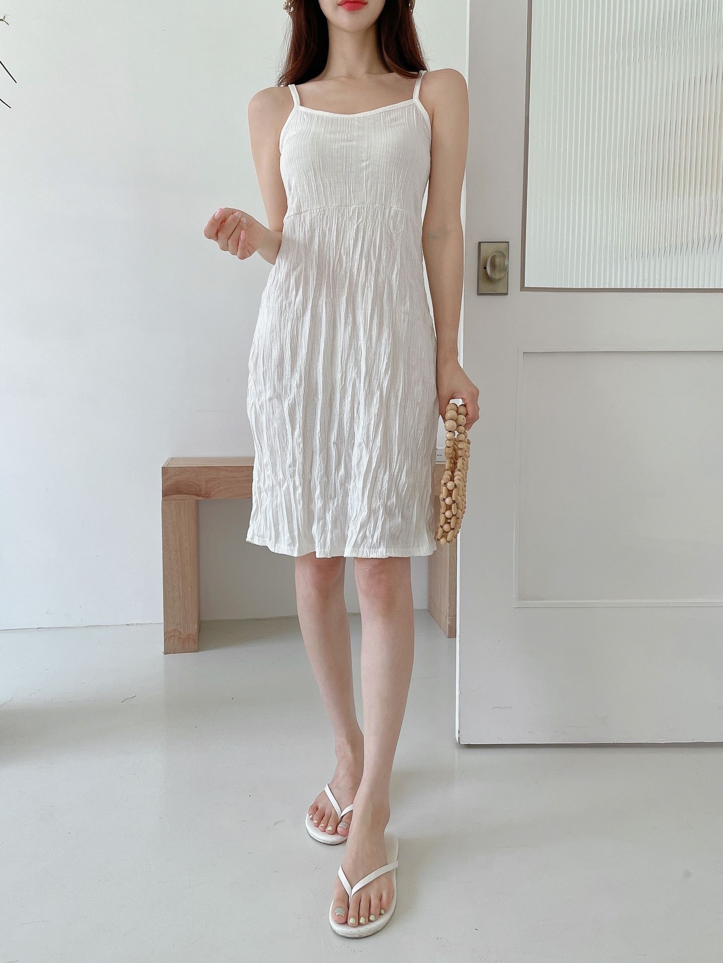 品名:미니 빅토리 나시 주름 원피스 ◎※☞颜色:베이지, 블랙, 화이트 ◎※☞尺寸:FREE ◎※☞材质:스판 5%,聚酯 65%,人造纤维 30% 翻译