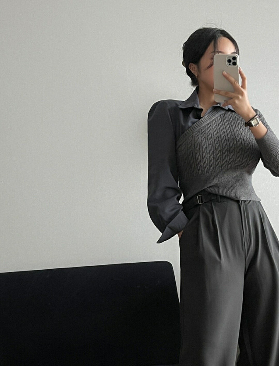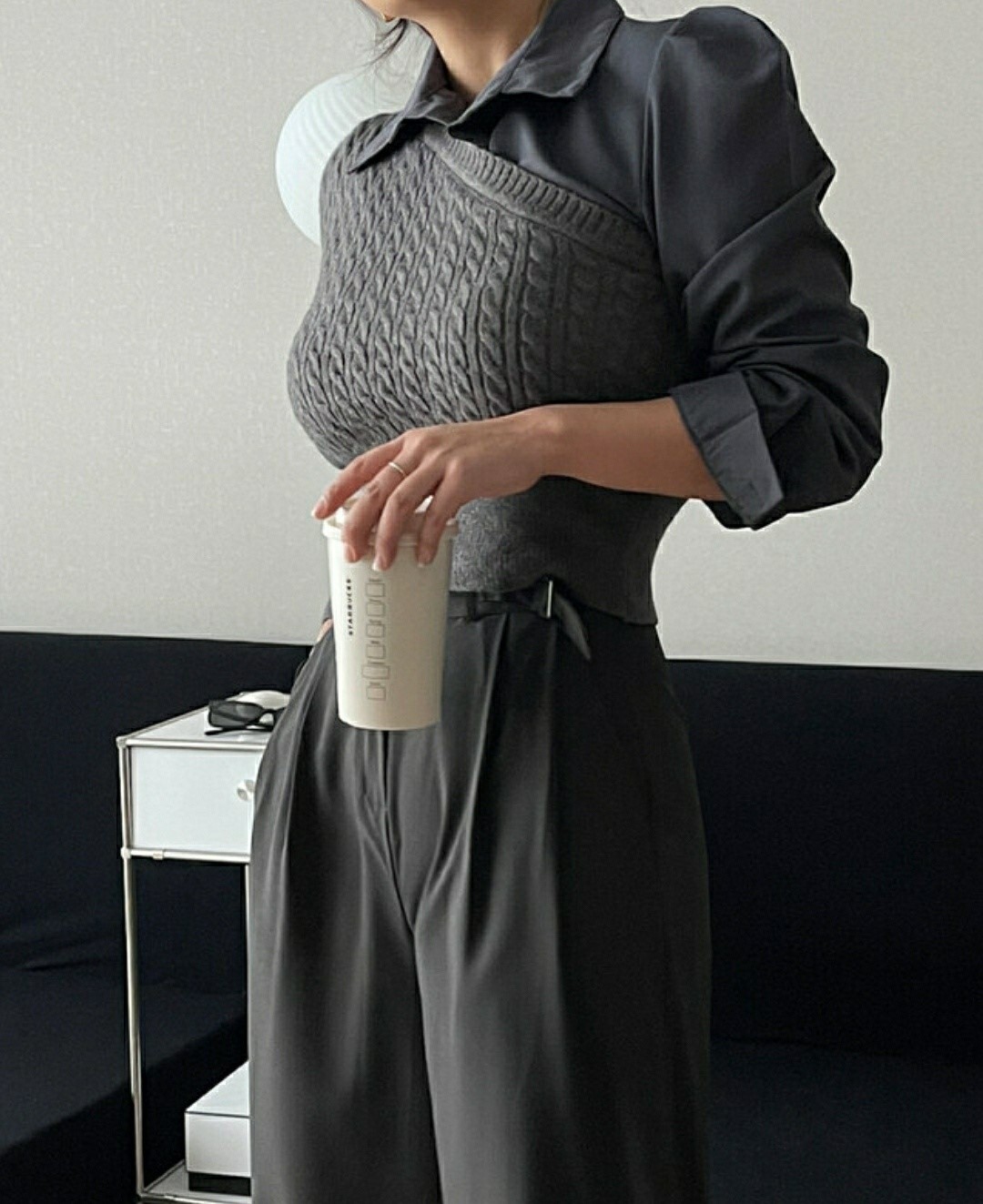 品名:트랜드니트 꽈배기 꼬임 배색니트 셔츠 남방 블라우스 ◎※☞颜色:블랙, 차콜, 크림 ◎※☞尺寸:FREE ◎※☞材质:腈纶 50%,纯棉 50% 翻译