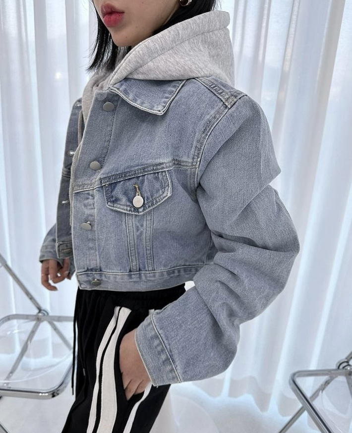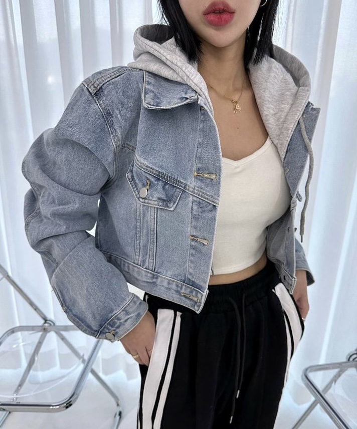 品名:9057(크롭 후드 청자켓) ◎※☞颜色:연청 ◎※☞尺寸:FREE ◎※☞材质:纯棉 100% ◎※☞注意事项:只能干洗,只能手洗,不能手洗,机洗,不能使用漂白剂,不能烘干,不能熨烫,不能曲折 翻译