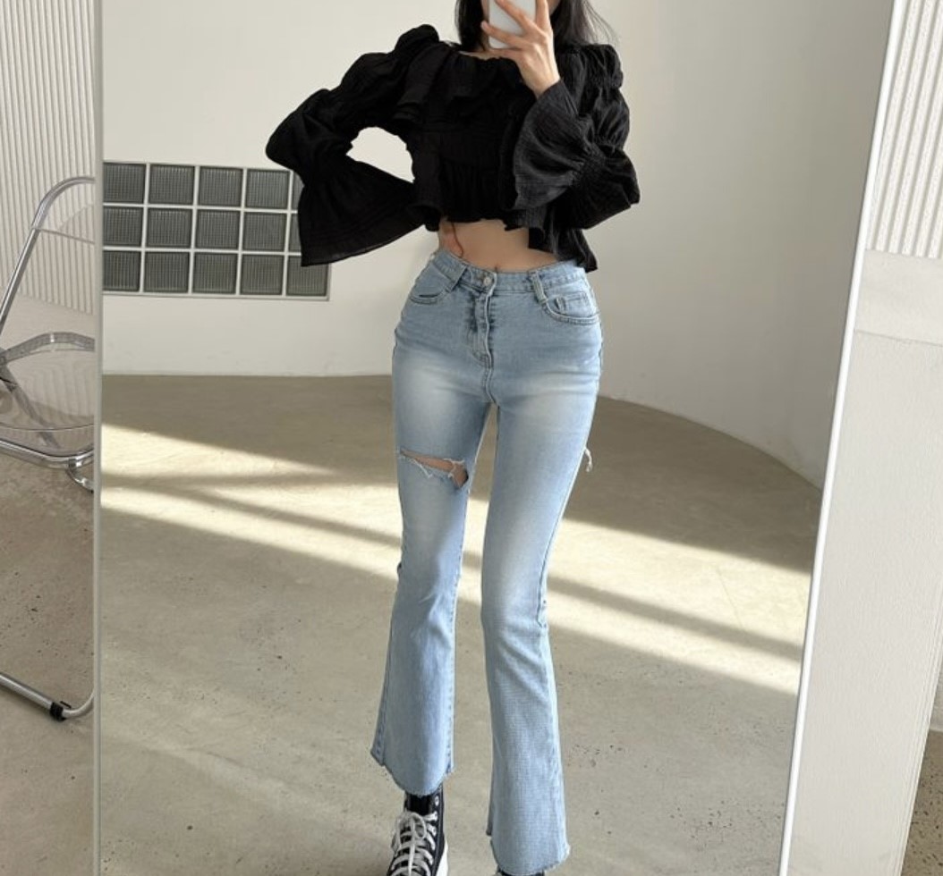 品名:1679(스카이 엉찢 부츠컷) ◎※☞颜色:연청 ◎※☞尺寸:L, M, S ◎※☞材质:纯棉 97%,聚酯 3% ◎※☞注意事项:只能干洗,只能手洗,不能手洗,机洗,不能使用漂白剂,不能烘干,不能熨烫,不能曲折