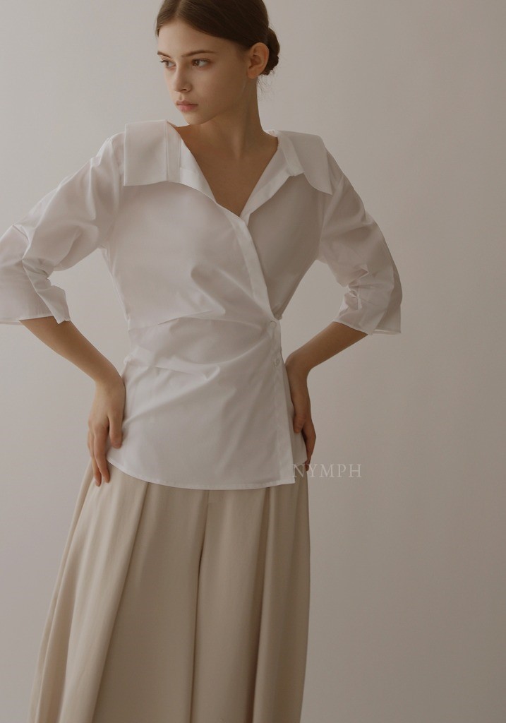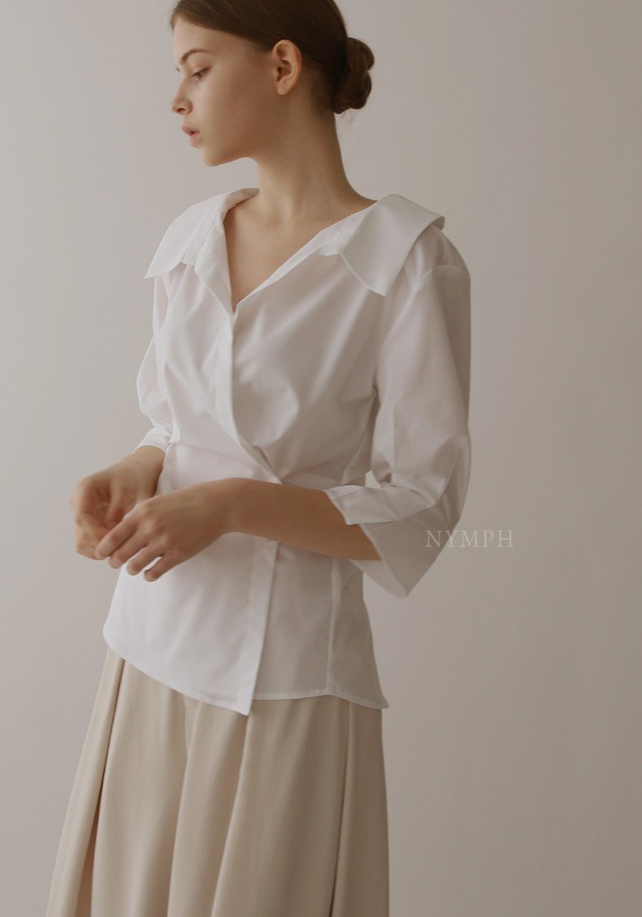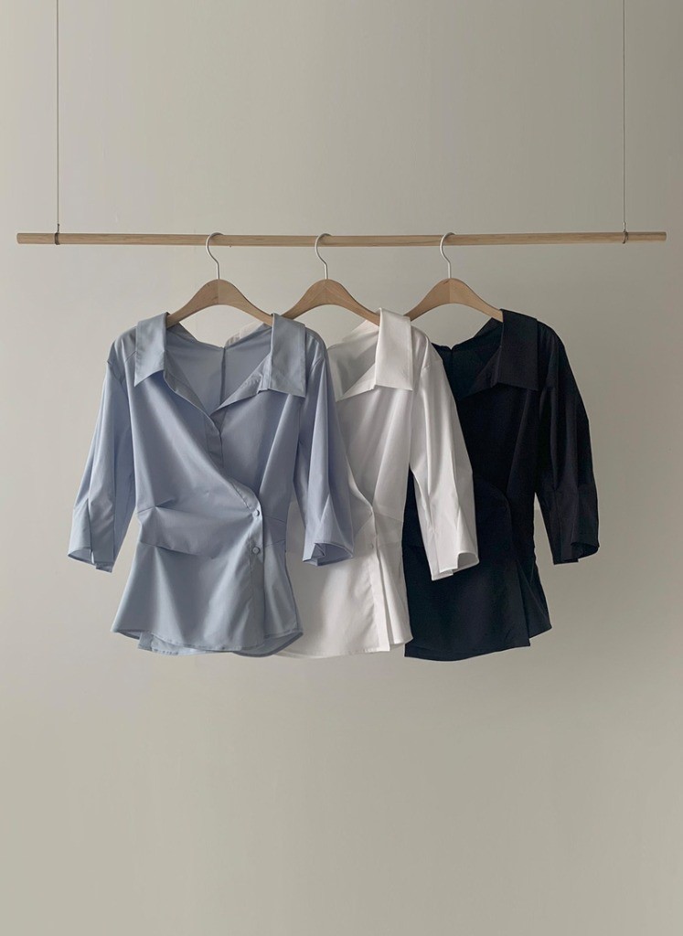 品名:简约优雅交叉收腰衬衫上衣 ◎※☞颜色:블랙, 소라, 화이트 ◎※☞尺寸:M, S ◎※☞材质:聚酯 60%,人造纤维 37%,弹力 3% 翻译