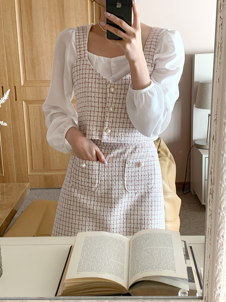 品名:티나 트위드 세트 ◎※☞颜色:블랙, 핑크 ◎※☞尺寸:FREE ◎※☞材质:聚酯 100% ◎※☞注意事项:只能干洗,只能手洗,不能手洗,机洗,不能使用漂白剂,不能烘干,不能熨烫,不能曲折 翻译