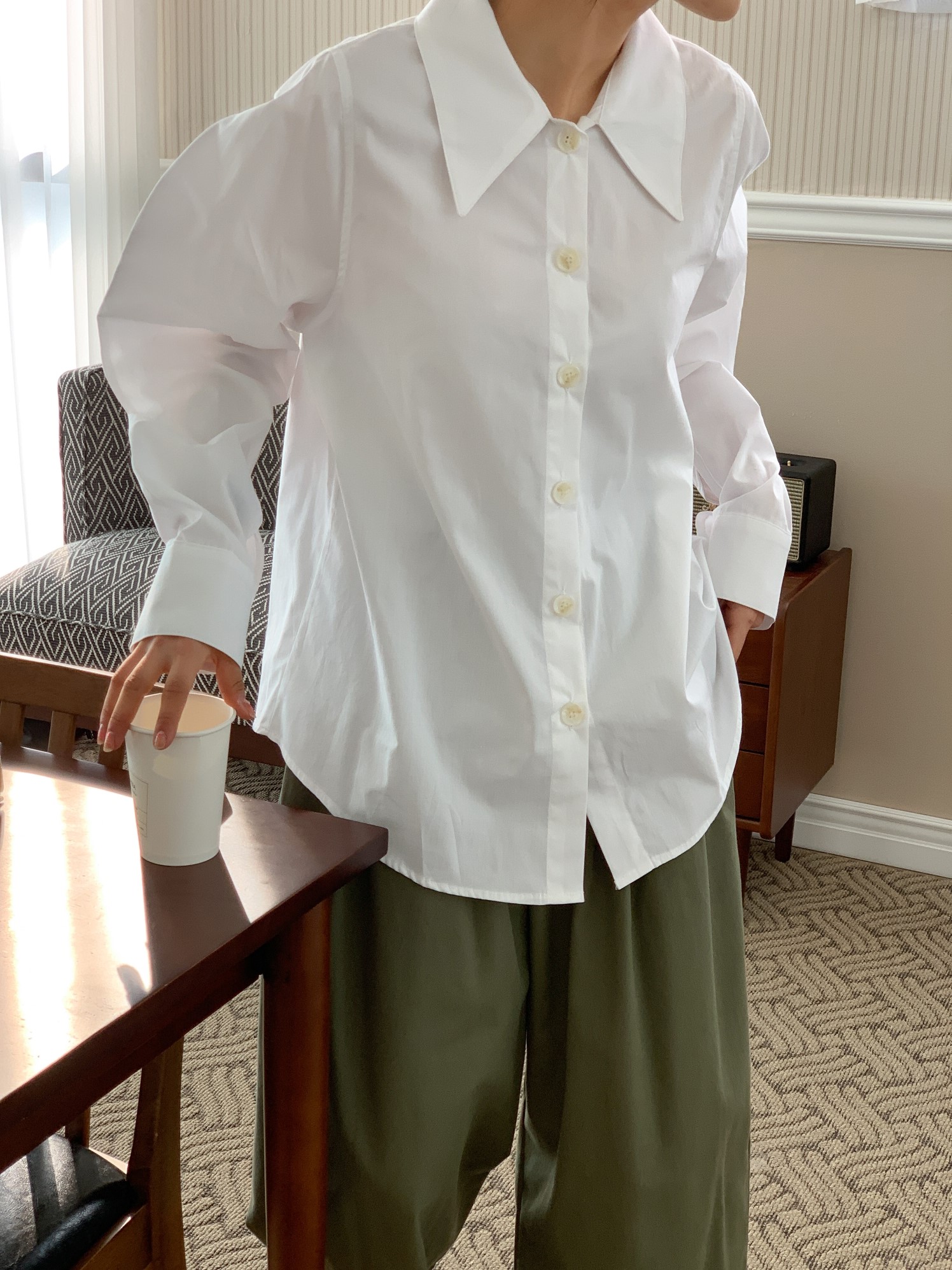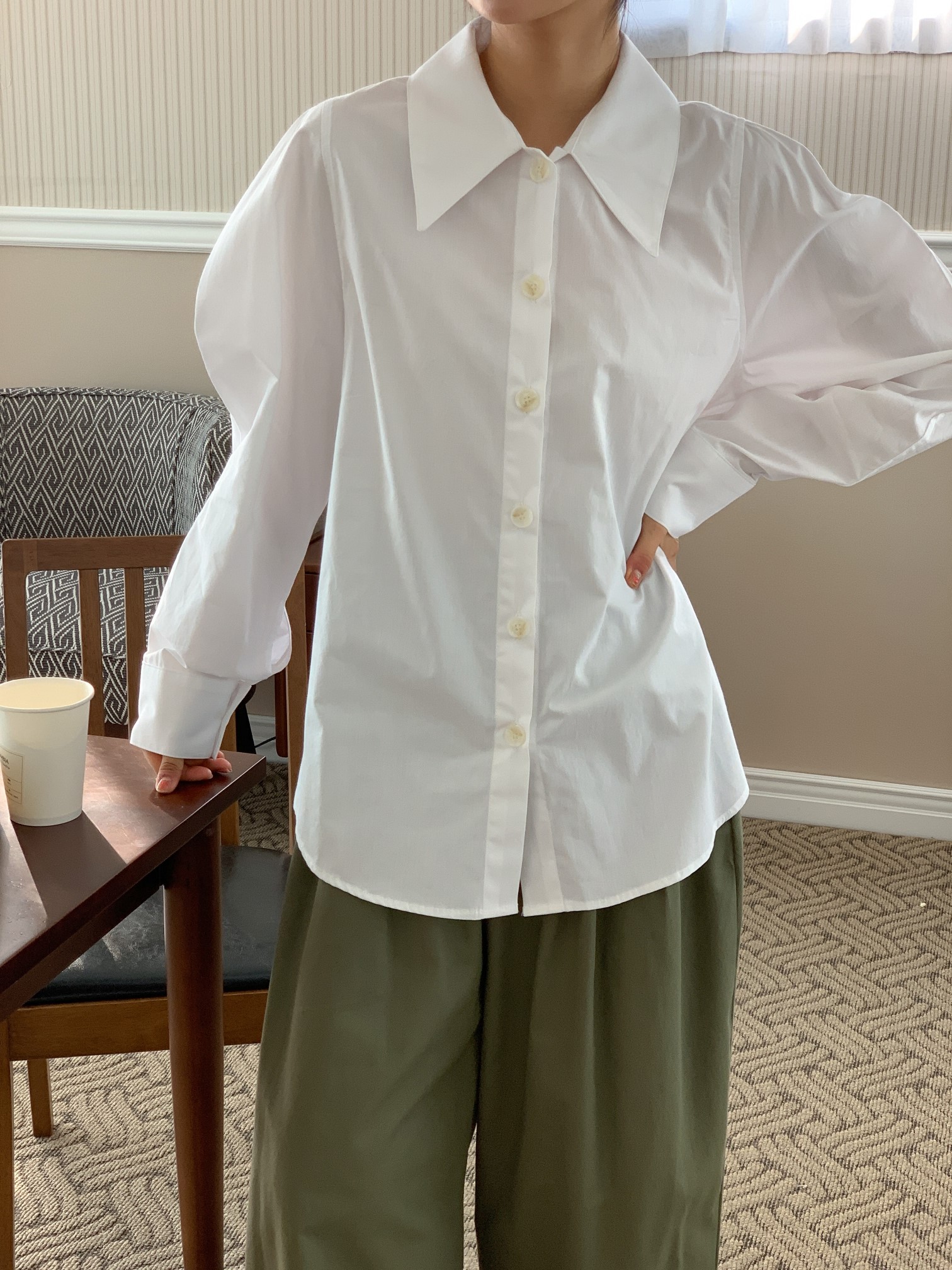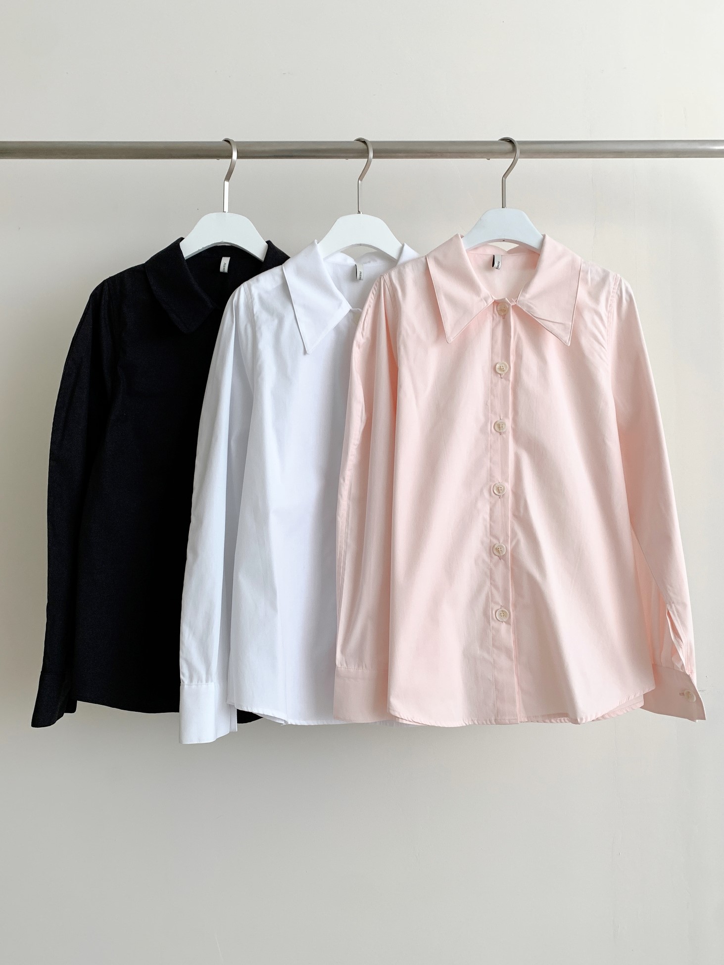 品名:22新款纯色简约大翻领纯棉衬衫 ◎※☞颜色:블랙, 핑크 ◎※☞尺寸:FREE ◎※☞材质:纯棉 100% ◎※☞注意事项:只能干洗,只能手洗,不能手洗,机洗,不能使用漂白剂,不能烘干,不能熨烫,不能曲折 翻译