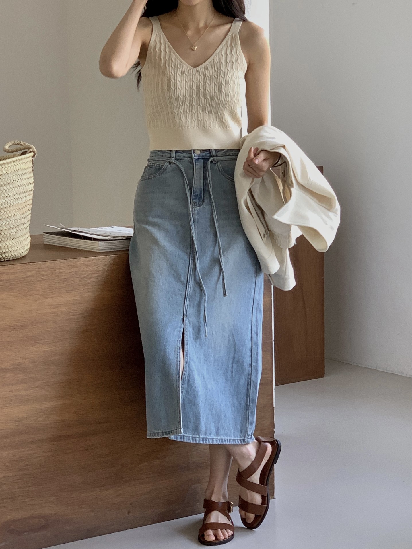 品名:2023SS - 스트링 데님 스커트 ◎※☞颜色:연청 ◎※☞尺寸:L, M, S ◎※☞材质:데님 100% ◎※☞注意事项:只能干洗,只能手洗,不能手洗,机洗,不能使用漂白剂,不能烘干,不能熨烫,不能曲折
