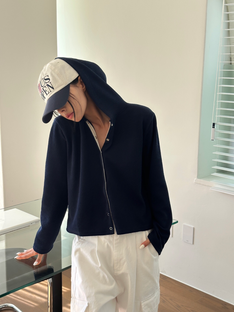 品名:돌핀 후드 버튼 가디건 ◎※☞颜色:그레이, 네이비, 아이보리 ◎※☞尺寸:FREE ◎※☞材质:聚酯 95%,스판 5% 翻译
