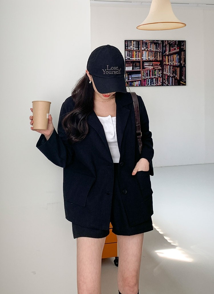 品名:时尚简约宽松棉麻西装外套 ◎※☞颜色:베이지, 블랙, 소라 ◎※☞尺寸:FREE ◎※☞材质:纯棉 90%,亚麻 10% ◎※☞注意事项:只能干洗,只能手洗,不能手洗,机洗,不能使用漂白剂,不能烘干,不能熨烫,不能曲折